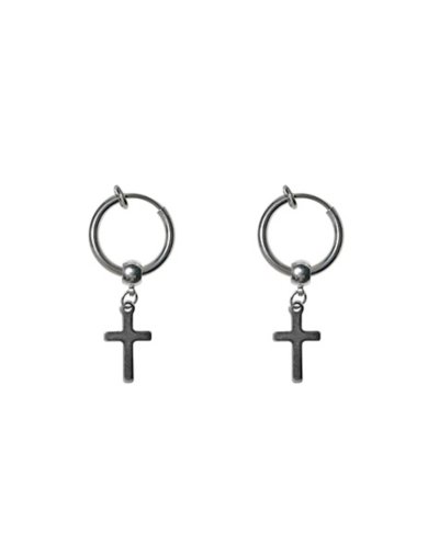 Buy Silvertone Cross Dangle Fake Hoop Earrings for $14.99 at @ Spencersonline.com