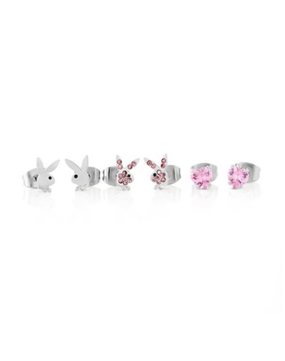 Buy Multi-Pack CZ Pink Playboy Bunny Heart Stud Earrings 3 Pack - Gauge for $19.99 at @ Spencersonline.com