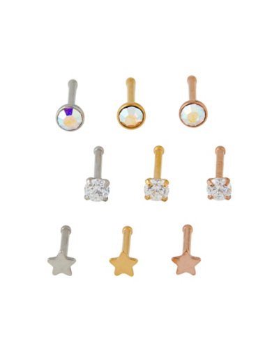 Buy Multi-Pack CZ Rosegold Silver and Gold Nose Pins 9 Pack - Gauge for $19.99 at @ Spencersonline.com
