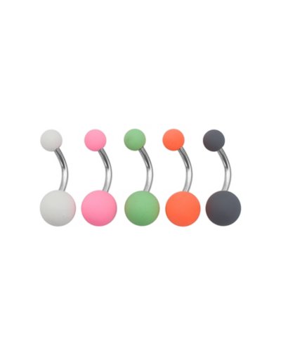 Includes: White belly ring Pink belly ring Green belly ring Orange belly ring Black belly ring Piercing Type: Belly Barbell Material: Acrylic Gauge: Gauge/1.6mm Barbell Length: 7/16" Ball Size: 5mm, 8mm Externally threaded closure Jewelry Care: Clean with antibacterial soap and warm water Piercing Care: Clean with H2Ocean Aftercare Spray (sold separately) or saline solution Imported Note: Do not use rubbing alcohol to clean jewelry as this may cause tarnishing Do not over-thread or apply excess pressure when adding/removing beads as breakage could occur Surgical steel may contain trace amounts of nickel.