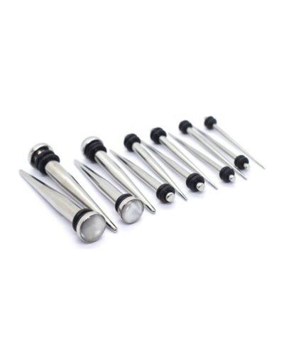 Includes: 6 pairs of tapers Piercing Type: Ear Barbell Material: 316L surgical steel Accent Material: 316L surgical steel Anodized black plating Gauge: Gauge/1.6mm, 12 Gauge/ 2mm, 10 Gauge/2.4mm, 8 Gauge/3.2mm, 6 Gauge/4mm ,4 Gauge/5mm Jewelry Care: Clean with antibacterial soap and warm water Piercing Care:Clean with Pierced Nation Jojoba Oil (sold separately) or saline solution Imported Note: Do not use any harsh, alcohol-based chemicals as this may cause tarnishing Surgical steel may contain trace amounts of nickel.