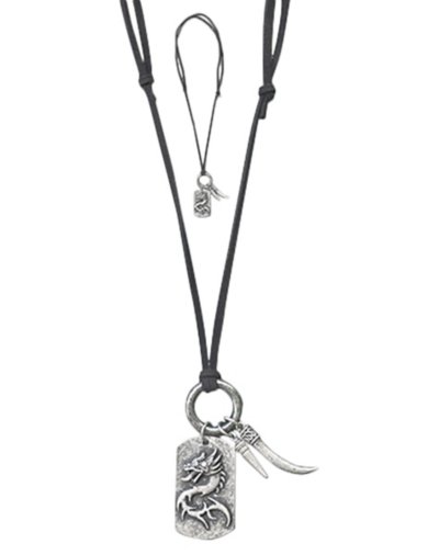 Buy Leather Horn and Dragon Dog Tag Necklace for $14.99 at @ Spencersonline.com