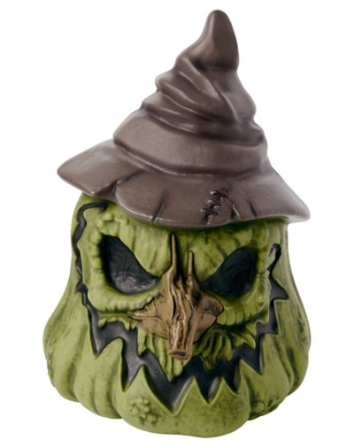 When the sun sets on Halloween night, the Witch Pumpkin prepares to take the souls of any and all trick-or-treaters. If you're searching for the perfect finishing touch to your haunted house, look no further than this spooky decoration! Dimensions: 10.2" H x 7.5" W x 7.9" D Material: Plastic Care: Spot clean Imported.