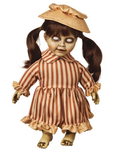 Her name might be Loving Lilith, but she's best known for being as evil as it gets. Add an eerie vibe to your haunted home when you get this frightening animated doll. Get ready to make your guests scream this Halloween! Animated Product Sayings: "Ill be your dolly forever and ever.. Ill make sure youll never leave me (sweet creepy giggles)" "Dont ever leave me alone. Ill get Very upset You dont want to see me upset! (sweet creepy giggles)" "Are you ready to join me on the eternal adventure? (sweet creepy giggles)" Battery Type: 2 AA batteries (included) Dimensions: 13.5" H x 7" W x 4.5" D Material: Plastic, fabric, electronics Care: Spot clean Imported.