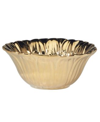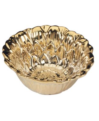 Bask in the splendor of the Gold Coast 3-d sunflower serving bowl, a true centerpiece that combines functionality with the luxurious allure of gold. This 15.5" diameter bowl, with its deep 4" contour, holds a generous 120 ounces, making it the perfect vessel for your most extravagant salads, sumptuous pasta dishes, or a colorful medley of fruits. Each detail of the sunflower's design is accentuated with a radiant porcelain finish, inviting light to dance across its petals and bringing a warm, golden glow to your table. The bowl's substantial size does not compromise its elegance, it is both a showpiece and a testament to exquisite craftsmanship.