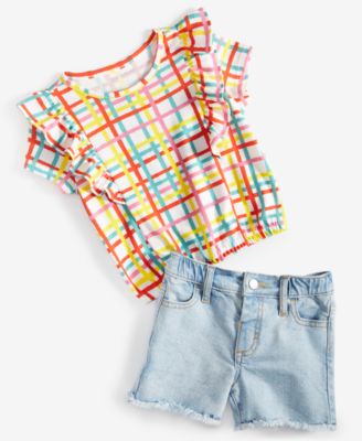 Epic Threads Toddler Girls Painted Plaid Ruffled Top Heathrow Denim Shorts Created For Macys