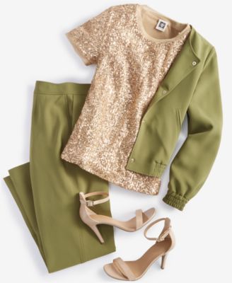Buy Anne Klein Womens Twill Bomber Jacket Sequined Top Slim Leg Ankle Pants for $17.76 at @  Macys.com