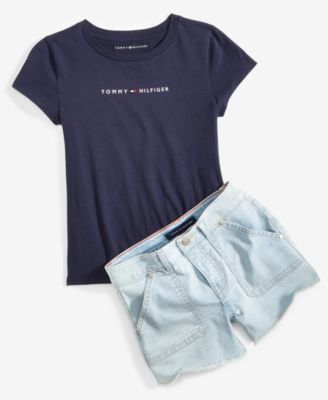 Buy Tommy Hilfiger Big Girls Classic Embroidered T Shirt Stretch Frayed Hem Denim Shorts for $8.46 at @ Macys.com