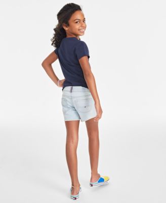 Tommy Hilfiger Big Girls Classic Embroidered T Shirt Stretch Frayed Hem Denim Shorts