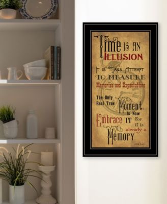 Memories by artist Billy Jacobs, in a stylish 15x27 white frame. This typography style art features the script, "Time Is An Illusion, It Is Man's Attempt To Measure Memories and Expectations. The Only Real True Moment Is Now, Embrace It For It Is already a Memory".