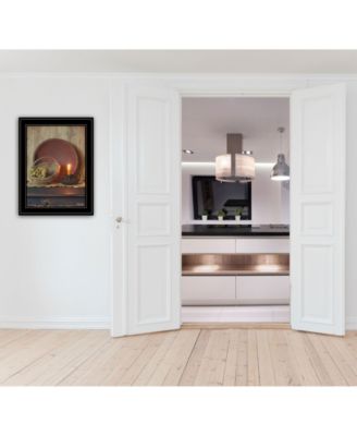 The Red Bowl by artisan Susie Boyer. This decorative white framed print, of primitive items- wooden cabinet, basket, wooden candle brings enhancement to any living room. Prints are textured-no need for glass.