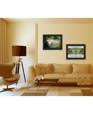 Beautyis a set of 2 10"x14" matching black framed framed art prints of nature photography with inspirational and motivational script. This set features a mirrored butterfly with a quote about significance, and a beautiful bridge in the mist.