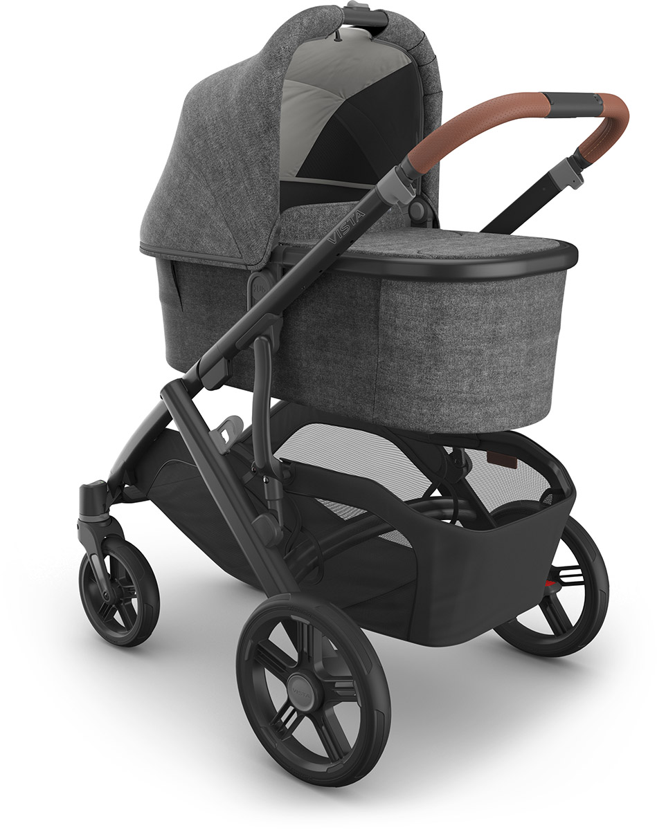 One for all. Our Vista stroller is intuitively designed to "grow" with your family! It starts as a single stroller but can easily transform to accommodate up to three children with added accessories and adapters - becoming the ultimate in portability and convenience! Features All-Weather Comfort Seat with Seasonal Seat Liner for cooler days or converts to mesh for warmer days; Enhanced FlexRide Strolling Suspension delivers a smooth ride whether strolling with 1, 2, or 3; Quick-to-secure harness system with magnetic buckle and easy-to-adjust, no-rethread harness; Parent-facing and forward-facing full size, toddler seat grows with child up to 50 lbs; Effortlessly folds in one simple step & stands when folded for compact storage; Extendable, water-repellent UPF 50+ canopy and easy-to-peek window for added air flow; Extra-large, easy-access basket with 30 lb. weight limit to easily store all your essentials while strolling; Premium fabrics and full-grain REACH certified leather details; Never flat tires for durability and smooth strolling through various terrain; Reflective trims on wheels and basket to enhance visibility while strolling; Ability to transport up to three children with RumbleSeat and PiggyBack accessories; One-handed multi-position recline for those "resting strolls"; Extendable water-repellant canopy with UPF 50+ protection, zip-out fabric, and mesh panels with covering for added protection for any weather; One-hand, adjustable handlebar to better accommodate different heights; Front wheel locks with visual indicators for parent's piece of mind; Adjustable footrest positions feet and legs comfortably as they grow; GREENGUARD Gold certified to support healthier air quality & low chemical emissions; Specifications Toddler Seat: 3 months to 50 lb; suitable from birth with Infant SnugSeat or Bassinet accessory (sold separately); Weight Frame & Seat: 27 lbs; Frame: 20 lbs; Seat: 7 lbs; Bassinet: 8.8 lbs; ; Unfolded: 36″ L x 25.7″ W x 39.5″ H; Folded with seat attached: 17.3″ L x 25.7″ W x 33.3″ H; Folded without seat attached: 13″ L x 25.7″ W x 32″ H; UPPAbaby Bassinet V3 Take your Bassinet from boulevard to bedroom by snapping it into the secure and elevated Bassinet Stand. Features Quick zip, cross ventilation panels that can be opened for greater airflow or closed for added warmth; Foam-free air mesh mattress for maximum breathability and safe overnight sleep solution; Dual zipper on bassinet boot cover easily opens and closes to tend to baby; Collapsable design for easy stow away whether traveling or limited in space; Vented window on base with covering bringing air flow from bottom to top; Extendable, UPF 50+ sunshade and mesh panels for air flow; Carry handle with an effortless one-hand stroller release for easy on-and-off attachment; Zip-out, water-repellent inner liner and boot cover are easy to remove and clean; Easy attachment options to stroller with indicators for extra security; Included Bug Shield to protect from outdoor elements; Fits directly onto Bassinet Stand Accessory; GREENGUARD Gold certified to support healthier air quality & low chemical emissions; Specifications Bassinet suitable from birth to 20 lbs or until infant can push up on hands and knees, whichever comes first; What's In The Bundle: Frame; Toddler Seat; Seasonal Seat Liner; Bumper Bar; Toddler Seat Bug Shield; Toddler Seat Rain Shield; Toddler Seat Storage Bag; 3-Year Warranty; Bassinet; Bassinet Bug Shield; Bassinet Mattress; Bassinet Mattress Cover;.