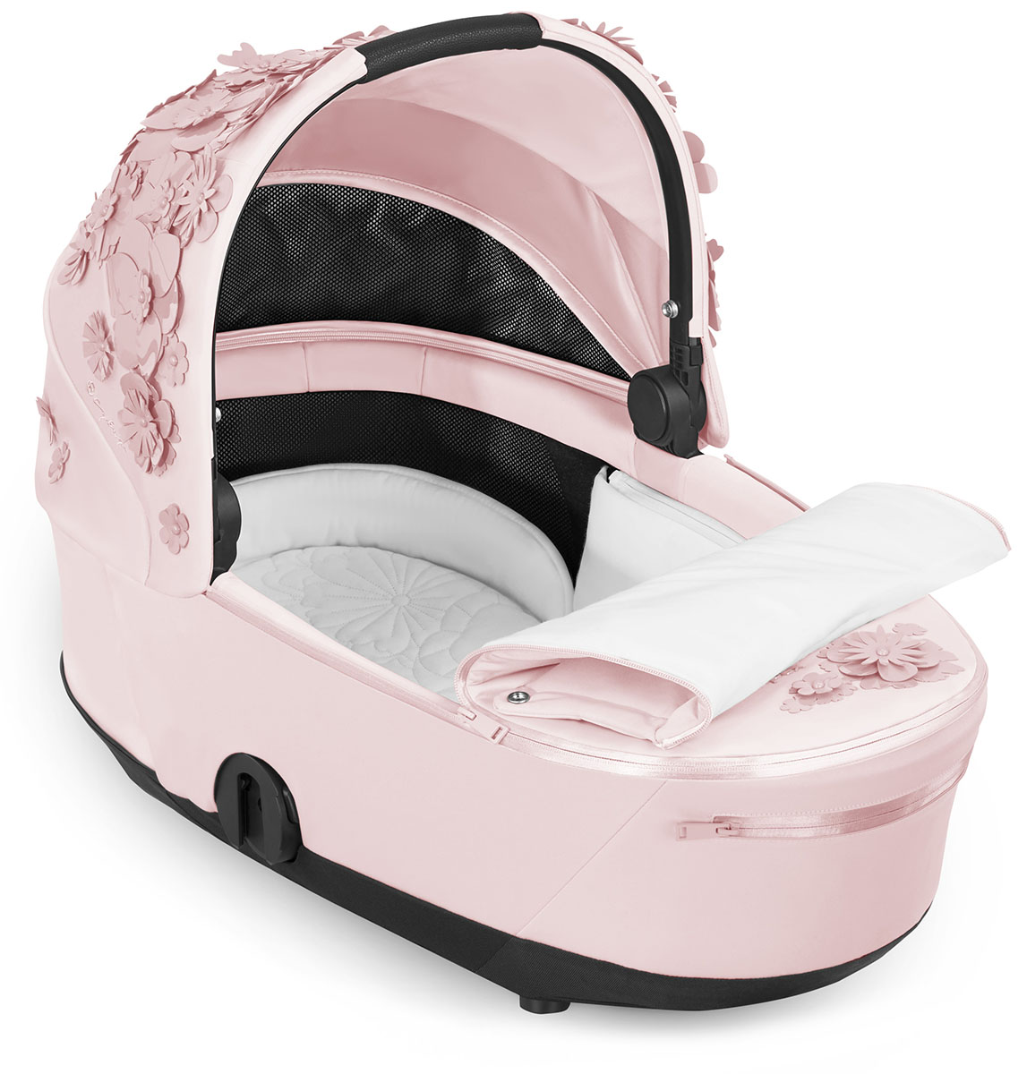 The CYBEX MIOS 3 Lux Carry Cot provides a comfortable and stylish place for your baby. Simply attach it to the MIOS 3 stroller frame and you're ready to go. Take a magical journey to a world of luxury, high fashion and craftsmanship of the highest quality with the CYBEX Simply Flowers collection. Strollers, car seats and accessories are all decorated with perfectly placed petals and unique blossoms. The flowers almost appear to be opening one after another, slowly revealing their full blooming beauty. Showcasing the skillful craftsmanship of our designers, each piece in the Simply Flowers collection is adorned with beautiful 3D petal creations and intricate floral embroideries. The Simply Flowers collection is a fairy tale bought to life feminine, romantic and above all, modern. Features: Panoramic and Skylight View Windows: Provide optimal ventilation; 100% Cotton Interior: For breathability and maximum comfort; Canopy with UPF 50+ and Extendable Visor: Protects baby from the sun's rays; Memory Buttons: Allow for easy click on/off the stroller; Exterior Zip Pocket: Provides easy access and storage for your essentials; Integrated Carry Handle: For easy transport to and from the stroller; Includes: Rain cover to protect your child from wind, rain or snow; Compatible With: MIOS 3 Strollers;.