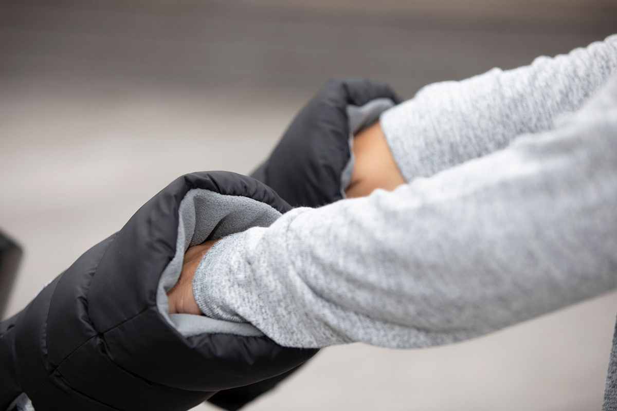 Calling all parents who've lost a glove on a cold winter walk-while juggling a stroller and a fussy baby. Warmmuffs make "runaway mittens" a thing of the past. They're cozy and durable, with a water repellent outer shell, poly insulation, and a super soft anti-pilling micro-fleece lined interior. But what makes them really special is the ingenious design, which attaches right to your stroller handle. Just slip your hands in and go to stay toasty on even the coldest winter strolls. When baby needs something, slide your hands out, do what you need to do, and go on your way. Transitioning between pushing the stroller and tending to your little one has never been easier-and you'll never lose another glove. DETAILS Hook & loop fasteners for quick placement and direct contact with stroller bar; Roomy cuffs for hands and jacket sleeves; Adjustable sizing for both moms and dads; Water repellent outer shell, ultra-soft premium insulation and anti-pilling micro-fleece lining; Machine Washable; Temperature Rating: -4F/-20C; Dimensions: W: 7", H: 9"; CARE Always machine wash cold. Tumble dry with low heat setting. Do not bleach. Do not dry clean. Do not iron. Be sure the garment is thoroughly dried and turned inside out during the drying process if necessary. You can also find washing instructions on all care labels located on the product. For all faux fur parts, please remove the faux fur before washing. For all other faux shearling lined products, please turn inside out during washing. Do not tumble dry.