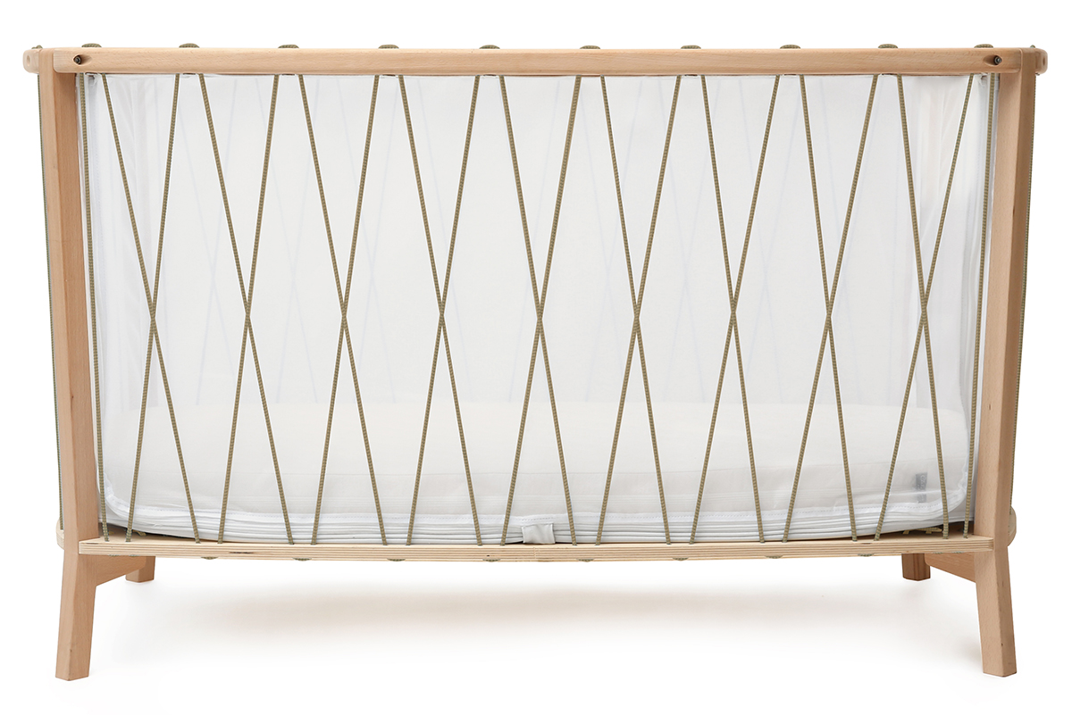 After the KUMI cradle, here is the KIMI bed, a 120×60 cm format baby bed, round and transparent. A completely new baby bed by its conception and design : KIMI has no barsNo more bars on your baby's bed! This way, he can see the world around him without hindrance and above all not get injured by getting his leg or arm stuck. Moreover, the absence of bars will prevent him from leaning over the side of the bed. KIMI is made of untreated beech wood without any treatmentWe wanted to eliminate any toxic product in contact with your baby. Especially on the sides of the bed that babies tend to chew on when they are teething. The KIMI is therefore made of untreated beech wood without any treatment, very finely sanded, wonderfully soft to the touch. KIMI is upgradeable, to last a very long timeWhen your child is ready to sleep in a toddler bed, the KIMI can adapt itself transforming into an open bed in its upgradable version. If you are worried that your child will fall out during the night, you can add our YOMI bumper to the side of the mattress. This way you can use your KIMI as a bed until your child is 4/5 years old. And even beyond that, since you can use it as a cot. KIMI is customisableChoose the cord that best suits your interior. Change the cord for your second child or even opt for a straight lacing instead of a crossover, KIMI adapts to your desires and tastes. You can also choose the mattress (optional) that suits you best. A CertiPur foam mattress made in France, or an organic mattress with a firmer baby side and a softer child side. KIMI is beautiful!Well, it's true, it's all a matter of taste! But at Charlie Crane we are very proud of our latest baby. With its airy design, its soft and harmonious curves, its attention to detail, it looks like no other bed while fitting perfectly in any child's room. Features: Do not use the baby bed before reading the instruction manual; Complies with the European standards EN716-1:2017+AC:2019 & EN716-2:2017; Extra simple assembly with an Allen key provided; Detachable fabric and machine washable; Design: Gaspard Tiné-Bérès for Charlie Crane; Registered design; Delivered with a mattress; Dimensions: Bed dimensions: 130 x 76 x H 75 cm; Mattress dimensions: 120 x 66 x H 8 cm; Height of the bed base: 16 cm; Height of the sides of the bed: 75 cm; Composition: Structure in beech wood rough sanded origin Europe. Birch plywood bed base; Mesh cocoon: 100% Polyester net 100% cotton bottom; Laces : Round braided laces 100% Polyester, thickness 5mm; Mattress: Dimensions : 120 x 66 x 8 cm; Complies with the European standard EN16890+A1:2021; Composition: 100% cotton mattress with CertiPUR Oeko-Tex foam & 100% Cotton Oeko Tex cover; Removable cover; Made in France; Content of the packaging: 4 hoops and 4 legs in raw beech wood; 1 Birch plywood bedspring; 1 cocoon; 1 bag of screws; 6 laces length 6,50 m; 1 user manual (FR/EN/DE/NL/IT/ES);.