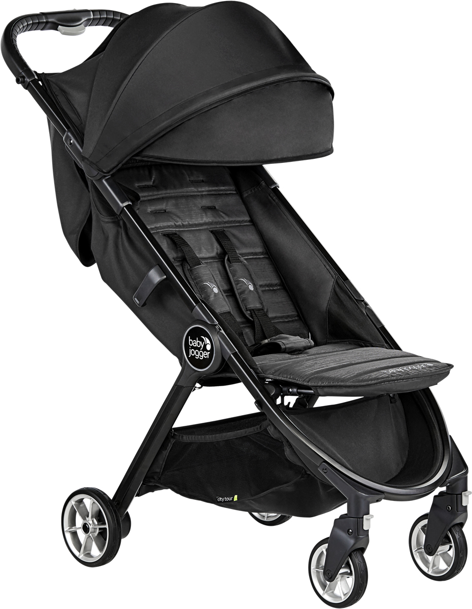 The city tour 2 folds small for big adventures. Now newly redesigned with infant car seat connection and carry cot compatibility so you can stroll from birth or with toddler on the go. The ultra-compact one hand fold and included carry bag make the city tour 2 the ultimate travel companion. Weighing only 14 lbs, the fully featured stroller includes multiple recline positions, adjustable calf support, UV 50+ canopy and a comfortable padded seat with added depth. Add-on accessories allow for easy customization of the city tour 2 stroller so you're equipped to carry on with your day, wherever it may lead you. Infants Welcome: City Tour 2 is compatible with infant car seats as well as the new Baby Jogger City Tour 2 Carry Cot.; A Comfortable Ride: Padded seat with added depth keeps baby comfortable as you're strolling.; Fold It, Lock It, and Go: One-hand fold and auto-lock make it easy to take the City Tour along with you, no matter what the day brings.; Travel Ready: Take a trip without breaking a sweat. Ultra-compact stroller folds to 19" across, 7" deep, and 23" tall to fold up and pack alongside your luggage.; Smooth Rides: Lightweight, durable rubber composite tires and locking front swivel wheels with suspension provide a smooth and nimble ride.; Get a Leg Up on Comfort: Baby can stretch out and relax! Adjustable calf support provides maximum comfort for growing legs.; Canopy with a View: Keep baby shaded with the UV 50+ canopy with extension panel, while the peekaboo window lets you keep an eye on baby as you stroll.; Store Without Stress: Storage basket has front and rear access so everything you need is within easy reach.; Specifications: Stroller Weight: 14.3 lbs; Stroller Height: 38.9"; Folded Dimensions: 6.8 H x 16.9 W x 21.6 L; Usage age: 6 months to 45 lbs ;.