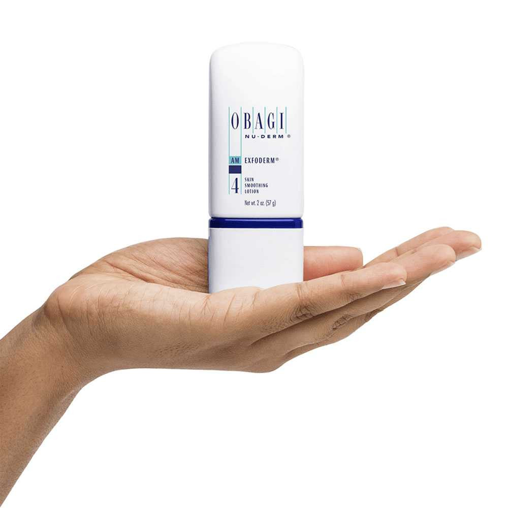 Diminish dark spots and banish dull rough patches of skin with Obagi Nu-Derm Exfoderm! This lightweight lotion gently exfoliates the top layer of skin increasing skin cell turnover rate and revealing new skin for a brighter skin tone and more even complexion. Gently lighten dark spots caused by aging freckles melasma and sun damage with continued use of this quick-absorbing silky smooth exfoliating cream ideal for normal to dry skin types. Step into your new skin with Obagi Nu-Derm Exfoderm! Benefits : Lightens dark spots over time with regular use Gently exfoliates away rough patchy skin Increases skins natural cell turnover rate Reveals new skin for a brighter more even skin tone Ideal for normal to dry skin [2 oz. / 57 g.].