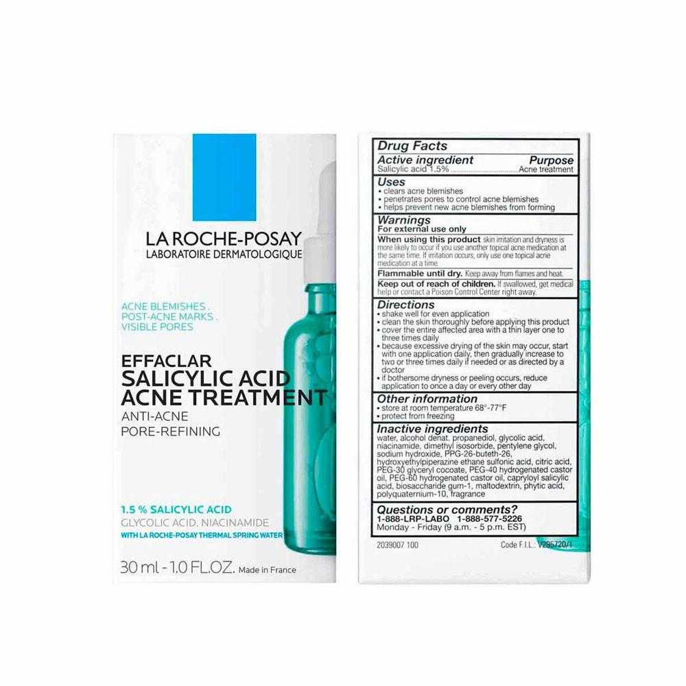 The lightweight salicylic acid acne treatment serum clearing your skin and preventing new breakouts while also reducing pores. This formula includes a blend of 1.5% salicylic acid glycolic acid and micro-exfoliating lipo-hydroxy acid for optimal efficacy! It's also infused with Niacinamide and Thermal Spring Water to soothe the surface of our delicate complexion as it treats existing blemishes or scars left behind by previous outbreaks. Get rid in an instant without any downtime thanks these advances ingredients formulated just right. Benefits: Helps clear acne blemishes and helps prevent new breakouts Visibly reduces the size of pores the appearance of fine lines and post-acne marks 45% reduction of pimples in 4 weeks 21% reduction of whiteheads and blackheads in 4 weeks 49% improvement of post-acne marks in 4 weeks 77% agree pores appear less visible in 2 weeks Ingredients: 1.5% Salicylic Acid Glycolic Acid Lipo-Hydroxy Acid (LHA) Niacinamide La Roche-Posay Thermal Spring Water [ 1 fl oz / 30 ml ].