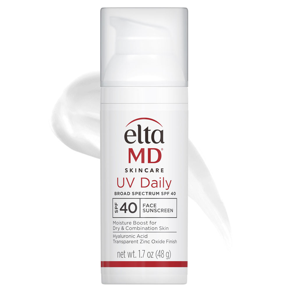 Ideal for dry normal combination and post-procedure skin EltaMD UV Daily Broad-Spectrum SPF 40 is noncomedogenic and free of fragrance parabens and sensitivities! This sheer facial sunscreen contains a 9% concentration of transparent zinc oxide paired with antioxidants to protect against harmful UVA and UVB rays effectively combating the early signs of aging associated with UV rays and infrared radiation. The addition of hyaluronic acid works to boost moisture retention and diminish the appearance of fine lines. EltaMD UV Daily should be applied liberally to face neck and back of hands 15 minutes prior to sun exposure and reapplied at least every two hours for maximum protection and can be worn on its own or applied under makeup choose from tinted orformulas for daily sun protection! Benefits : 9% concentration of transparent zinc oxide protects against sun damage Can be worn on its own or applied under makeup Available in tinted andformulas Noncomedogenic and free of fragrance parabens and sensitivities Ideal for dry normal combination and post-procedure skin [1.7 fl oz / 48 g] Experience the most complete & specific line of sun protection products in the industry see the full line of EltaMD skincare products at BeautifiedYou.com . Authorized EltaMD Resellers - 100% Authenticity Guaranteed.