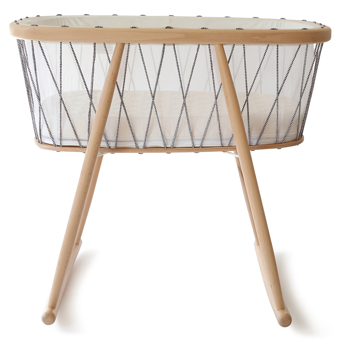 After the warmth of the mother's womb, the cradle is the place where the baby will spend most of his time during the first months of his life; the place where he will gradually wake up to the world. Charlie Crane therefore designed the KUMI as both a reassuring cocoon and a space open to the outside world. The design of the KUMI combines tradition and modernity. It retains the millenary lateral swing, a delicate movement that helps babies fall asleep, while sketching minimalist and contemporary lines, thanks in particular to the laces that surround it, which gives it both lightness and safety. During assembly, the parents tie the cords themselves. A gesture of high emotional value since it involves participating in the construction of the child's nest. Features: Do not use the cradle before reading the instruction manual; Use from birth until the child can sit alone, stand up or crawl; Compliant with European standard EN1130:2019; Extra simple assembly using an Allen key supplied; Detachable and machine washable fabric; Design: Gaspard Tiné-Bérès for Charlie Crane; Registered design; The Charlie Crane KUMI Mesh Crib includes: 1x beech plywood hoop; 2x feet and 4x legs in solid beech; 1x metal structure; 1x cocoon with 4 PVC rods; 1x foam mattress; 1x bag of screws and bolts; 2x laces length 9,50 m; 1x user manual (FR/EN/DE/DE/NL/IT/ES/PT); Specifications: Dimensions: 32" L x 22" W x 28.4" H; Height of the cot base: 17.3"; Materials: Wooden structure: Beech plywood hoop from Turkey or Romania, 2 coats matt water-based varnish. Skids and uprights in solid Beech wood from Turkey, 2 coats matt water-based varnish.; Metal structure: Wire and metal plate Steel White epoxy paint; Mesh Cocoon: 100% Polyester nest 100% cotton bottom; Laces: Round braided laces 100% Polyester, thickness 5mm; Mattress: Core: 1.6" Certipur Foam; Cover: 100% cotton quilted with polyester fiber; 26.8" L x 15.8" W x 2" H; Made in France;.