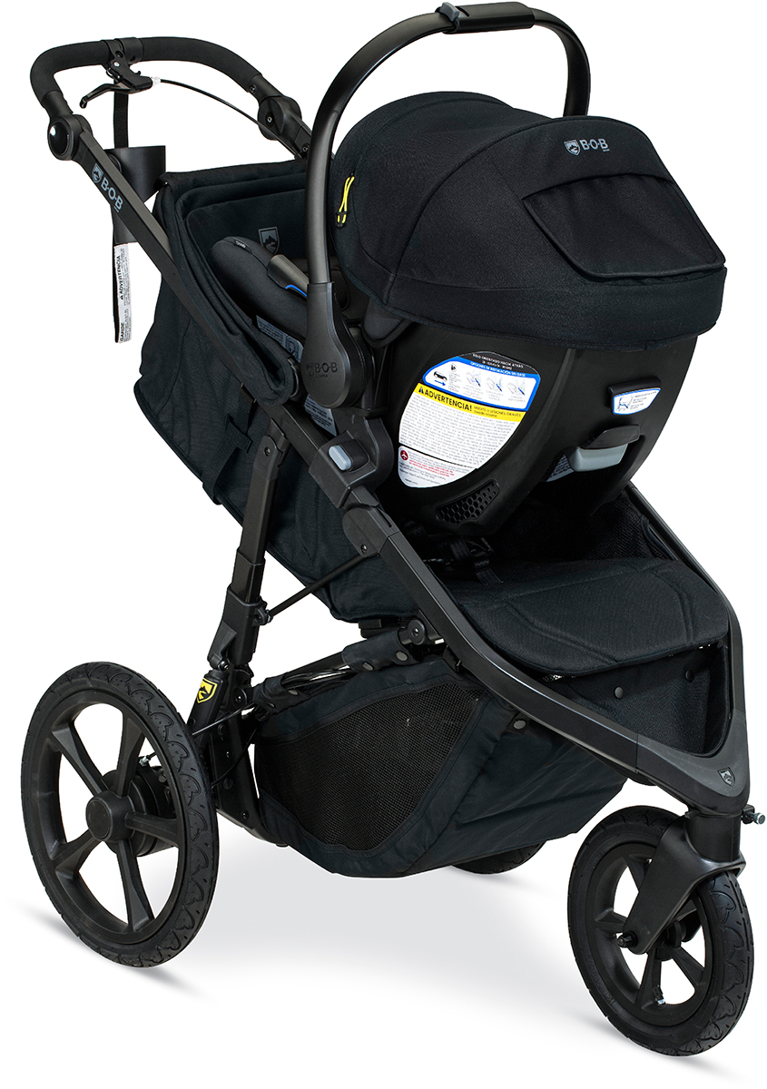The BOB Gear Wayfinder(TM) Infant Travel System is small enough to go anywhere and flexible enough to go everywhere. This infant car seat and stroller combo includes the Wayfinder jogging stroller, Champ infant car seat with Wilder infant car seat base, adult cup holder for stroller, and infant car seat adapters. The lightweight rear-facing Champ infant car seat features best-in-class ClickTight(R) installation and thoughtful details-like a one-hand adjustable carry handle, SerenityShade(TM) extendable canopy, SpaceSaver(TM) design, and washer- and dryer-friendly cover-to make life on the go more enjoyable. Designed for babies from 4 to 30 pounds, the car seat features a RightSize(TM) system that provides adjustment points at the hips, shoulders and between the legs to give your baby a perfect fit. Whether you're cruising streets or tracking miles, you're in for a smooth ride when you use the BOB Gear Wayfinder baby stroller that pairs a sleek and slim design with high-performance jogging features. Independent dual suspension and air-filled tires keep you strolling steadily on bumpy sidewalks and rocky roads, while the adjustable handlebar creates the perfect fit for parents of all heights. Let the front wheel on this single stroller swivel for easy steering on walks or strolls, then lock it into place when you're ready to run (consult a doctor before running). The handbrake keeps you on pace and in control when you're heading downhill. Keep your little one shielded from the sun and the rain using the removable UPF 50+ canopy, and chat with your tiny traveler through the mesh peek-a-boo window as you jog or walk. With a weight capacity of 75 pounds, BOB Gear Wayfinder is the only stroller you'll ever need. With a removable zip-top cargo basket with convenient front access, three storage pockets and a parent cup holder, the BOB Gear stroller keeps your personal belongings secure while you're out and about. The one-hand DualRetract(TM) fold lets you pack up quickly while keeping your other hand free for multi-tasking. Plus, this travel stroller folds about 30% smaller compared to the 2021 Thule Urban Glide 2 and UppaBaby Ridge, and the wheels tuck in to free up 3 inches of space, keeping things compact and easy to store. Features SLEEK, SLIM DESIGN: Stroller pairs a sleek-and-slim stroller design with high-performance jogging features to give you the best of both worlds; ONE-HAND DUALRETRACT FOLD: Stroller wheels tuck in to free up 3 inches of space; plus the canopy and basket can be removed for easy storage in tight spaces; AIR-FILLED TIRES: Independent dual suspension and air-filled tires to keep you strolling steady on bumpy sidewalks and rocky roads; FRONT WHEEL SWIVELS AND LOCKS: Use the front wheel in swivel mode for easy steering on walks and strolls, then lock it into place when you're ready to run; ADJUSTABLE HANDLEBAR: Portable stroller has an adjustable handlebar that easily fits parents of various heights; CLICKTIGHT INSTALLATION: Britax-exclusive ClickTight installation technology offers secure car seat installation in three easy steps: open, thread and buckle, click it closed; ONE-HAND ADJUSTABLE CARRYING HANDLE: Car seat features a lightweight aluminum carry handle that easily adjusts with one hand, keeping your other hand free for multi-tasking; RIGHTSIZE SYSTEM: Provides adjustment points at the hips, shoulders and between the legs to create your baby's perfect fit from the start; EASY IN, EASY OUT: Built-in harness holders and flip-forward belly pad clear the way for breezy boarding; SPACE-SAVING CAR SEAT: Car seat features a SpaceSaver design with a slim outside and spacious inside to free up backseat space while giving your child plenty of room for the ride; LATCH CONNECTORS: Quick-push LATCH connectors lock into place with a click, are easily released with the push of a button, and store within the base when not in use; SAFETY FEATURES: Car seat has SafeCell Technology to help manage energy and minimize force transferred to baby, while ReboundReduce Stability Bar on car seat base helps minimize movement in a crash; COMFORTABLE FIT: Champ infant car seat is rear-facing only for 4 to 30 pounds; Wayfinder Jogging Stroller is suitable for children up to 65 pounds; stroller cargo basket can hold up to 10 pounds;.