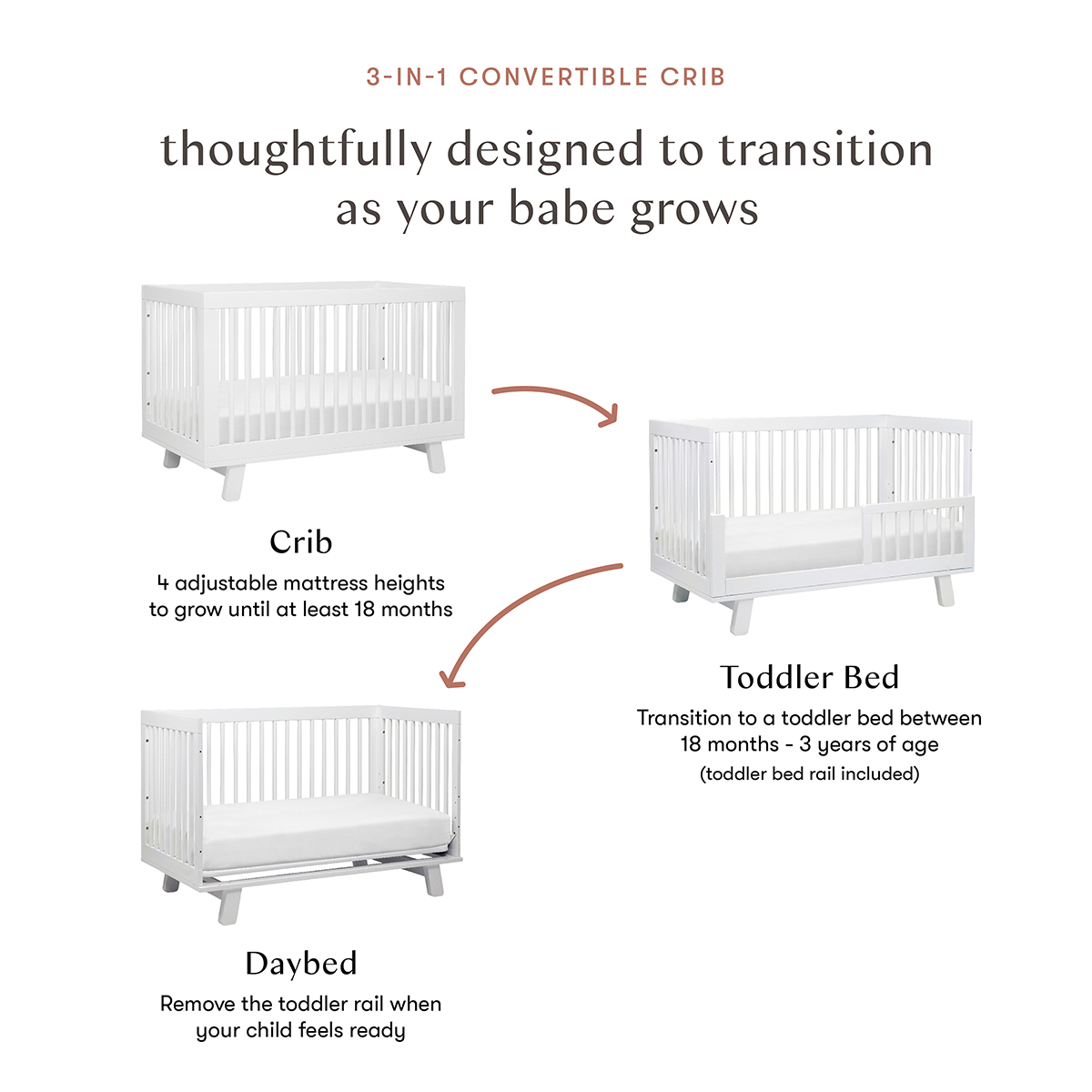 Babyletto Hudson 3-in-1 Convertible Crib with Toddler Bed Conversion Kit - White Finish