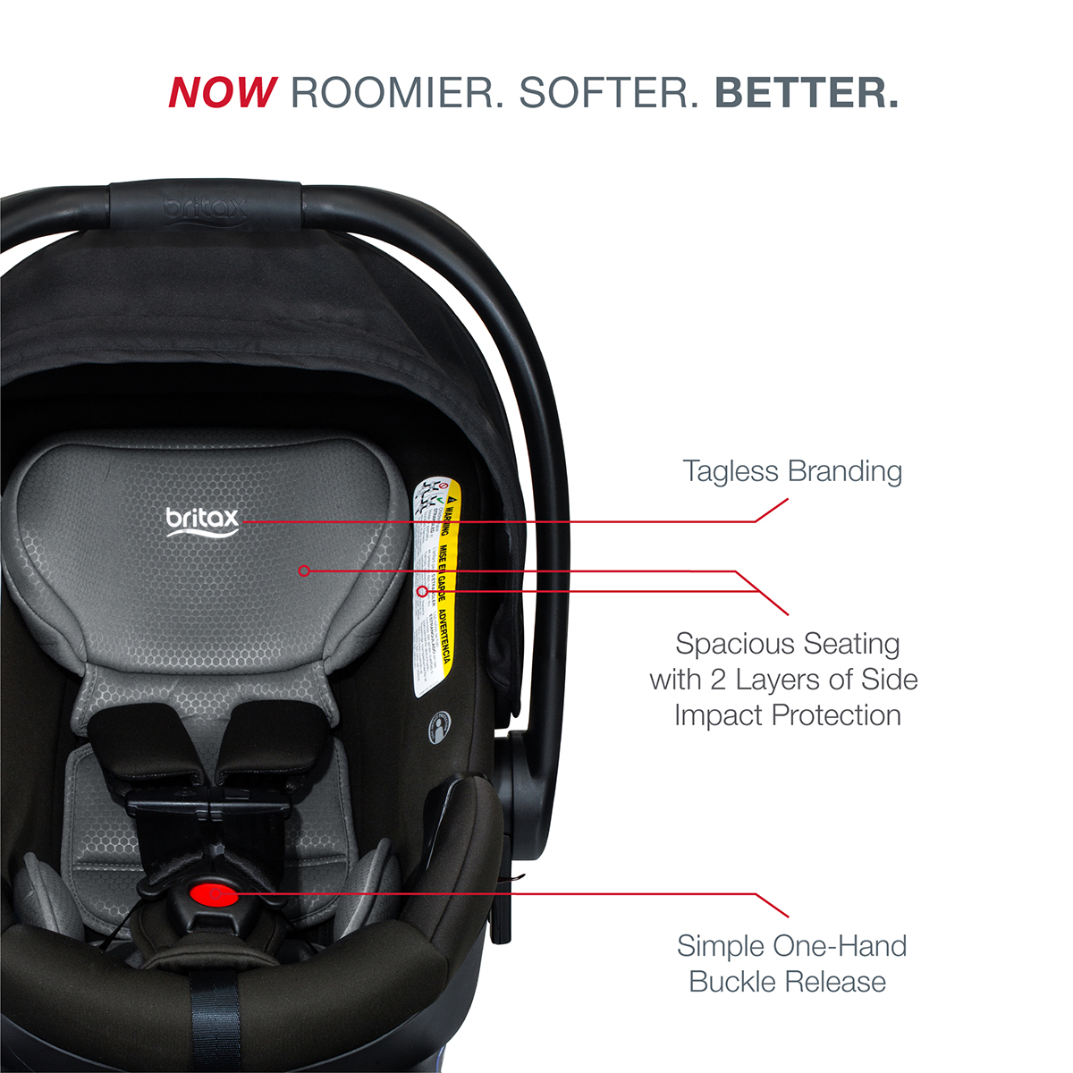 Cruise smooth and safe with the B-Lively Travel System, featuring all-wheel suspension and a lightweight design. There's room for all your baby gear in the large storage basket with front access. One-hand quick fold means it easy to store and keep going. B-Safe Gen2 FlexFit infant car seat has a sturdy build with a high-strength steel reinforced base & SafeCell crumple zone. No-rethread harness moves with the headrest for easy adjustment as baby grows. Britax Travel System: includes B-Lively stroller (birth to 50lbs), B-Safe Gen2 FlexFit infant car seat (4-35lbs & up to 32"), car seat base & Click & Go adapters B-LIVELY STROLLER Lightweight Design for everyday strolling; One-Hand Quick Fold means it easy to store and go ; Click & Go System lets you click in your Britax infant car seat and keep going; Large Storage Basket with front access to all your belongings; large zipper pocket ; All-Wheel Suspension for ultra-smooth ride; Infinite Recline lets you find the perfect angle for napping or seeing the world ; Peek-a-boo Window for those frequent peeks at your little one; Ventilated UPF 50+ canopy keeps baby cool while cruising B-Safe Gen2 FlexFit Infant Car Seat; B-SAFE GEN2 FLEXFIT INFANT CAR SEAT Looking for B-Safe Ultra? B-Safe Gen2 FlexFit is the next generation of Britax infant car seats, made with a spacious seating area and smooth-touch knit fabric; Thoughtful Details: Tagless fabric helps prevent irritation behind your baby's head; covered harness release button; SafeWash Cover: Safe to machine wash and dry, with a knit construction that's naturally flame retardant; 6-Position, Quick-Adjust Harness & Headrest move together to create the perfect fit as your baby grows-no rethreading, ever!; Sturdy Build for peace of mind while you're on-the-go; 2 Layers of Side Impact Protection: Protective shell with foam surrounds the head, neck, and torso; High Strength Steel reinforces the car seat base to help keep it stabilized; Patented SafeCell Technology acts as a crumple zone, absorbing crash energy to help keep it away from your little one ; European Belt Guide provides increased stability when installing without the base; Exclusive SafeCenter LATCH for secure installation in 3 easy steps: connect lower anchors, pull straps to tighten, click carrier into the base; Quick-Push LATCH Connectors lock into place with a click and are easily released with the push of a button; 1-Hand Harness Buckle Release: Quick and easy to unbuckle baby and keep moving; Soft Comfort Pads help keep your child's neck from rubbing against the harness; Built-In Lock-Offs help to ensure a snug vehicle seat belt installation with minimal effort; Easy-Read Level Indicators are visible from all angles, clearly displaying the proper installation position for your vehicle; Spring-Assisted Recline makes it easy to adjust the seat to the best angle for your vehicle; Removable Infant Pillow gives your newborn baby support when they are under 11 lbs; Ergonomic Handle is comfortable to carry with your hand or forearm; UPF 50+ Extra-Large Canopy protects your little one from sun and rain; Click & Go Stroller Compatibility allows you to pair the car seat with any Britax stroller; Specs B-Safe Gen2 FlexFit Infant Car Seat B-Lively Stroller Child Weight - 4 - 35 lbs Product Weight - 20 lbs Child Standing Height - 32" or less Maximum Unfolded Dimensions - 33"L x 23"W x 40"H Product Weight - Car Seat Only - 11.6 lbs Folded Dimensions, Wheels On - 29"L x 23"W x 11"H Product Weight - Base Only - 9 lbs Interior Seat Width - 11" Product Dimensions - 17.9" W x 25.85" H x 26.6" L Measuring Guide - For use with children from birth up to 50 lbs Seat Back Compartment Height - 20" Shoulder Width - 15" Seat Area Depth/Width - 12.5" / 8.5" Harness Slot Heights - 9.5" / 12.5" / 15" Shoulder Width - 10" Buckle Strap Depth - 5.5" Harness Slot Heights - 5" / 6.2" / 7.4" / 8.6"/ 9.8'' / 11'' Buckle Strap Depths - 3.5" / 5.5".