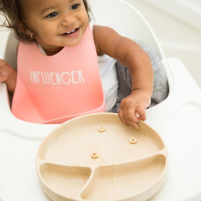 Our silicone suction plate is divided into 3 sections for well balanced meals, promotes good eating habits and appropriate portions. The plate suctions to any table or highchair tray to keep meals in place. Approved by a team of experts to make mealtime fun and functional; Suctions to surface to prevent spills; Fits most high chair trays; Size: 8" diameter; Recommended Age: 6 months+; -100% FDA Approved Food Grade Silicone -BPA Free -PVC Free -Phthalate Free -Dishwasher Safe -Microwave safe. CARE: Wipe clean with soap and water. Dishwasher safe.
