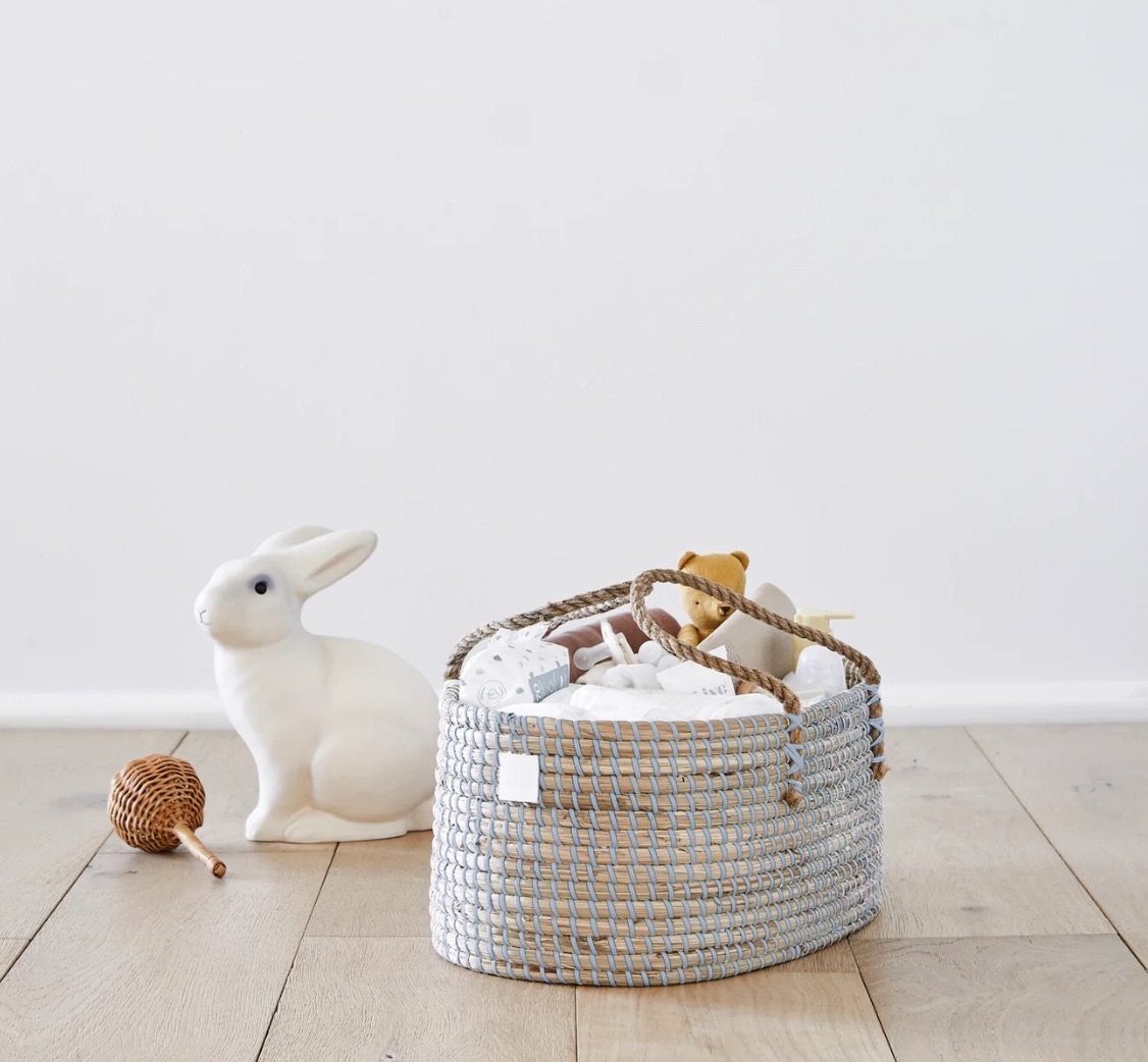 The LILY diaper caddy organizer was designed to be not just beautiful but also super practical by keeping all the baby essentials organized. It's versatile, as it can be used for many different stages from baby to child. The basket is made in sustainable and eco-friendly seagrass with a recycled plastic weave and features a removable divider in a cotton canvas. You can easily remove this at any time to convert to a toy basket, picnic basket or multipurpose basket to use long after diaper changes are over. Made in premium, durable & sustainable seagrass; Removable divider; Sturdy and extra long rope handles for easy handling; Multiple Uses- it can be used as toy basket or any type of multipurpose basket around the home; Size: L 16 x W 11 x H 7 inches. May have slight variations from basket to basket due to their unique hand vowed nature. ; Weight 2.6 lb; Made by Mamas for Mamas: Our Vietnamese artisan mamas work out of the comfort of their own homes and make our baskets while looking after their small children and running the household. They take pride in the production of our handmade products, and their skill ensures the reliable quality of our brand. When bringing a BEBE BASK piece in to your home, you support local Vietnamese artisans and their families by creating an income and ensuring the continuation of the fine art of craftsmanship. Handmade: Each and every single piece has natural imperfections that create it's 'one of a kind' beauty, so you'll never find another just like yours. Variations in color and finish is normal and not considered as faults. Care Instructions: The surface of the natural seagrass can easily be wiped with a damp cloth and left to air dry in an open area. Divider: Spot clean only.