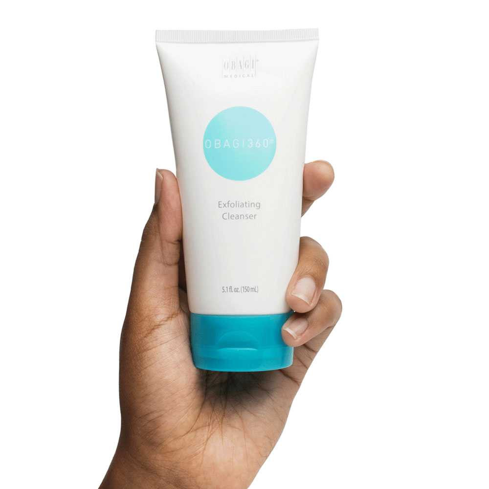 Obagi 360 Exfoliating Cleanser works to gently exfoliate skin mechanically helping to shed dead skin cells and clear clogged pores of dirt debris and excess oil that can lead to blemishes or dry uneven skin tone. This daily face wash thoroughly and effectively cleans skin revealing a soft and smooth complexion improving cell renewal and helping to diminish signs of aging dark spots fine lines and wrinkles. Achieve a youthful radiant complexion with Obagi 360 Exfoliating Cleanser! Benefits : Reveals a youthful radiant complexion with continued use Gently exfoliates to shed dead skin cells and clear clogged pores Improves cell renewal for a soft and smooth complexion Diminishes dark spots fine lines and wrinkles Designed for mature skin [5.1 fl oz / 150 ml].