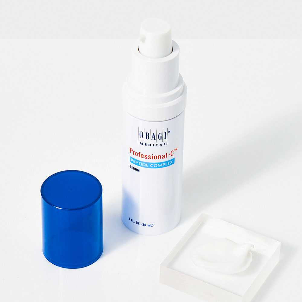Youll think youve found magic in a bottle with Obagi Professional-C Peptide Complex Serum! This incredible multipurpose serum combines natural grown factors Kinetin and Zeatin to repair damaged skin cells along with peptides that stimulate natural collagen production and skin brightening Vitamin C to defend against free radicals all rolled into this unique formulation proven to reduce the depth of wrinkles by 35% after only four weeks of use! Revitalize your skin and restore a youthful appearance with Obagi Professional-C Peptide Complex Serum! Benefits : Proven to reduce wrinkle depth by 35% after only four weeks of use Restores a youthful revitalized appearance Natural growth factors Kinetin and Zeatin repair damage skin cells Vitamin C defends against free radicals and brightens complexion Peptides stimulate natural collagen production [1 fl oz / 30 ml].