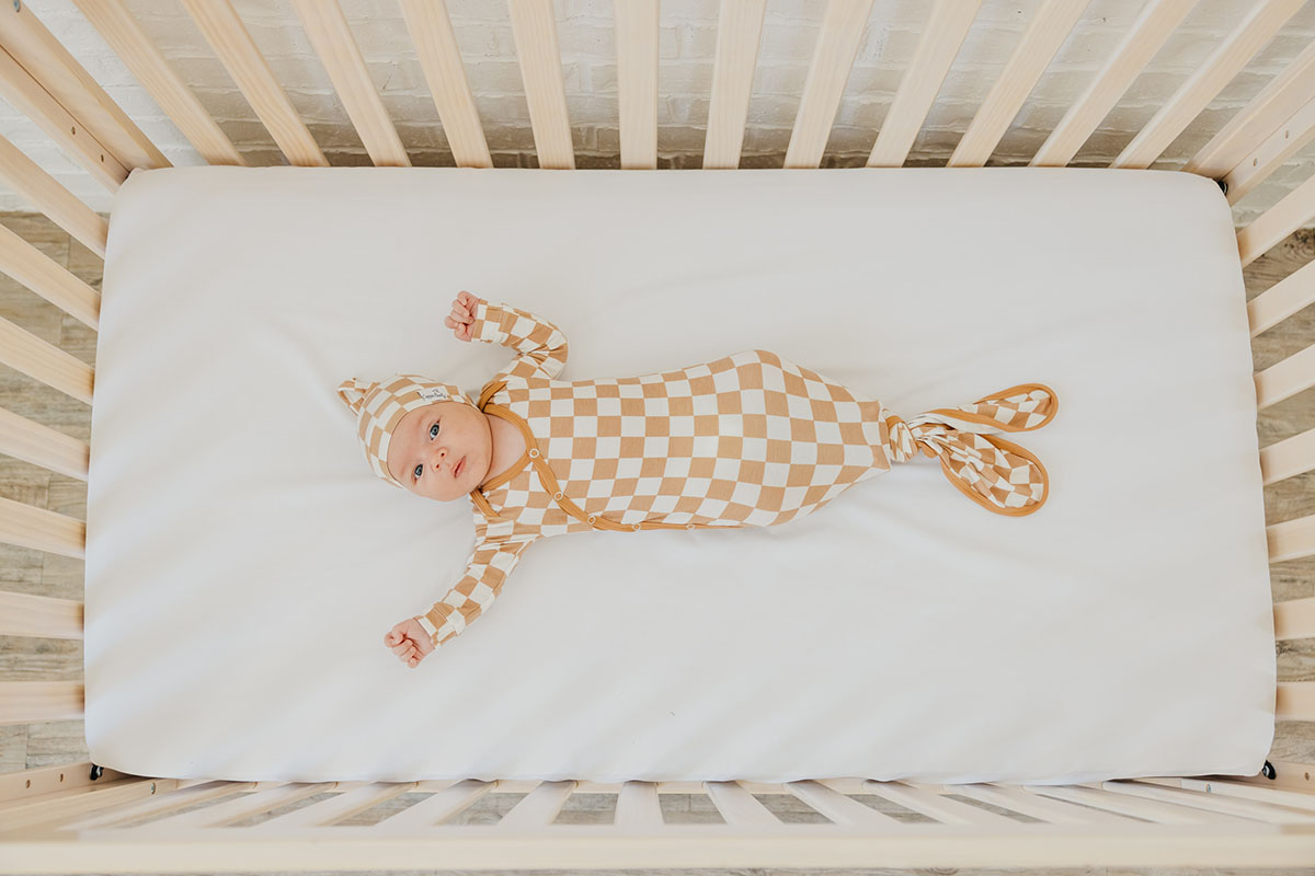 Knot your average baby gown. Premium Polyester/Rayon Blend Made with the same premium knit fabric as our beloved swaddles, this soft and stretchy gown ties at the bottom for easy diaper changes-and has room to grow. Generous Size A length of 32.5 inches and width of 8 inches. Bonus Features Our knotted gowns feature unique snaps to make dressing a breeze, along with fold-over hand mitts to prevent scratching. Trendy, High Quality Designs At Copper Pearl we pride ourselves on making high quality products that always look great on babies, moms, or in your nursery. Our knotted gowns are simple, modern, and sure to elevate any baby's style. Pair Perfectly With Copper Pearl Products Our trendy, newborn knotted gowns flaunt your favorite Copper Pearl prints and patterns. They are made to coordinate perfectly with products you already own and love! Care: Machine wash cold. Tumble dry low heat.