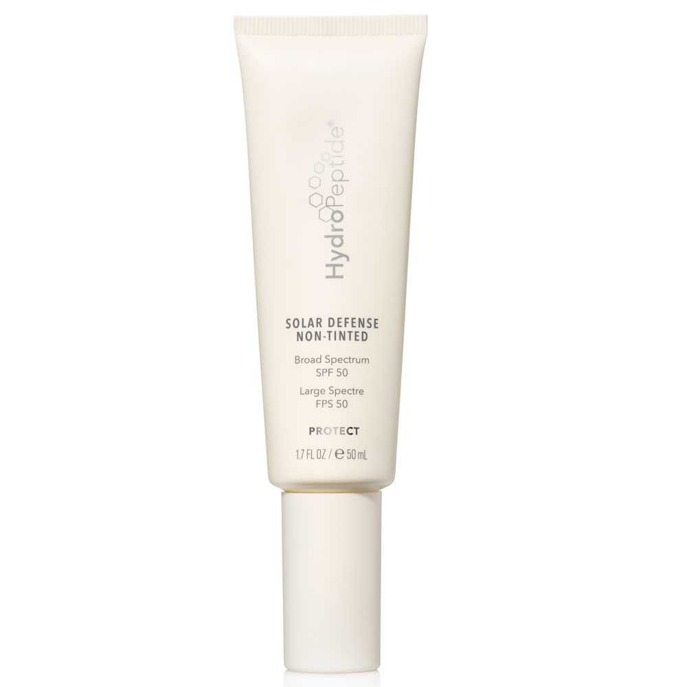 HydroPeptide Solar defense works to shield you from damaging sun rays with broad spectrum SPF protection. Available in SPF 50 Non-Tinted or SPF 30 Tinted. This product provides a flawless finish with its unique ability to self-adjust to your skin tone and give you a smooth matte finish. Apply this non-greasy sunscreen to your face before makeup and 15 minutes prior to sun exposure to protect moisturize and clarify your skin. Pro Tip : Now available in a tinted and non-tinted formula. Please note that this product uses special Color Match Technology --the product will appear white and adjust to match your skin tone when it is applied. Benefits: Titanium Dioxide and Zinc Oxide physical blocking sunscreens offer broad spectrum protection against UVA and UVB damage. A Moisture-Binding Peptide rich in protein and derived from yeast extract reactivates epidermal lipids and allows for improved long-lasting hydration. Significantly decreases the sebaceous secretion of oily skin leaving a non-shiny appearance. Oil-free formula that doesn't leave a greasy feel. Aloe niacin and sodium hyaluronate perfectly balance hydration. Self-adjusting sphere's perfectly blend to any skin tone without leaving a white chalky appearance thus camouflaging mild hyperpigmentation and redness while offering a more even flawless matte finish. [1.7 oz./ 50 ml.].