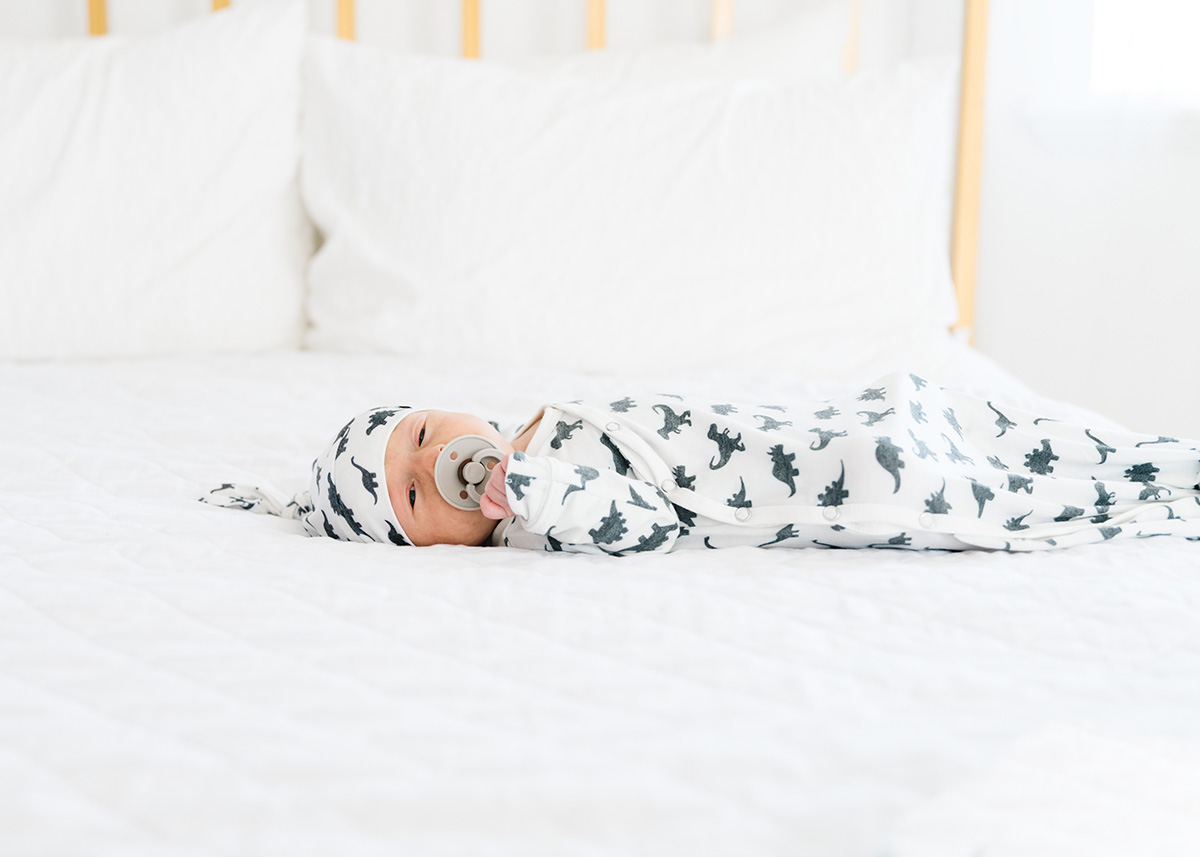 Knot your average baby gown. Premium Polyester/Rayon Blend Made with the same premium knit fabric as our beloved swaddles, this soft and stretchy gown ties at the bottom for easy diaper changes-and has room to grow. Generous Size A length of 32.5 inches and width of 8 inches. Bonus Features Our knotted gowns feature unique snaps to make dressing a breeze, along with fold-over hand mitts to prevent scratching. Trendy, High Quality Designs At Copper Pearl we pride ourselves on making high quality products that always look great on babies, moms, or in your nursery. Our knotted gowns are simple, modern, and sure to elevate any baby's style. Pair Perfectly With Copper Pearl Products Our trendy, newborn knotted gowns flaunt your favorite Copper Pearl prints and patterns. They are made to coordinate perfectly with products you already own and love! Care: Machine wash cold. Tumble dry low heat.