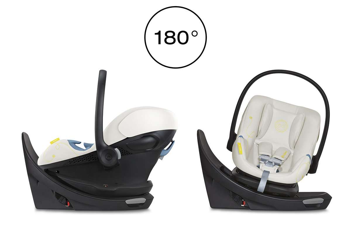 CYBEX Aton G Swivel delivers 180 degrees of rotation while offering maximum convenience and safety without compromising on design. The 180-degree swivel base provides an ergonomic swivel that makes it easier than ever to load and unload the child from the carrier while the seat is installed in the vehicle, and advanced safety features like anti-rebound bar and Linear Side-impact Protection reduce collision forces in the event of a crash. Further optimizing safety and comfort, the lightweight Aton G Swivel also includes an adjustable headrest and no-rethread harness, in-shell air ventilation for natural airflow, and the SAFELOCK belt tensioner for quick and easy installation. Features: 180-DEGREE SWIVEL: The 180-degree swivel base provides an ergonomic swivel that makes it easier than ever to load and unload the child from the carrier while the seat is installed in the vehicle; ANTI-REBOUND BAR: Offering the highest level of advanced safety in the event of a crash, an integrated anti-rebound bar reduces rotation and overall movement of the car seat during a crash, which ultimately reduces crash forces to the child; 11-POSITION ADJUSTABLE HEADREST WITH NO-RETHREAD HARNESS: integrated harness adjusts with the headrest for a proper fit as your child grows; LINEAR SIDE IMPACT PROTECTION: integrated into the shell effectively reducing collision forces on the child in a side impact crash; LIGHTWEIGHT: Weighing in at only 9 lbs., the Aton G Swivel is one of the lightest carriers on the market, making it easy to both install and carry; EASY INSTALL: SAFELOCK belt tensioner offers quick, simple, and secure belt installation; EASY GLIDE RECLINE: In base recline allows you to adjust recline angle for proper fit in the car without having to re-install the base; TRAVEL SYSTEM COMPATIBLE: connects to all CYBEX strollers with included adapters to create a convenient travel system; ERGONOMIC RELEASE: one-handed base and stroller release at the back of the carrier shell; REMOVABLE NEWBORN INSERT: supports babies from 4 to 11 lbs.; FAA COMPLIANT: allows for infant carrier use during air travel without base; IN-SHELL AIR VENTILATION: provides natural airflow to keep your child comfortable and cool in warmer temperatures; XXL UPF50+ SUN CANOPY: protects your child from the sun and elements; FLAME-RESISTANT FABRIC: passes federal safety standards without the use of added fire-retardant chemicals; EASY TO CLEAN FABRICS: Baby messes are no match for the Aton G Swivel's machine washable fabrics that make for quick and easy clean-up; What's In The Box: The Cybex Aton G Swivel Infant Car Seat includes: Aton G Swivel Infant Car Seat; Recline & Swivel Base with Anti Rebound; Newborn Inlay; Sun Canopy; Specifications: DIMENSIONS: 26.1" L x 17.5" W x 14.7" H; WEIGHT: 9 lbs (without base); SUITABILITY: From 4 lbs. up to 35 lbs.; Up to 30";.