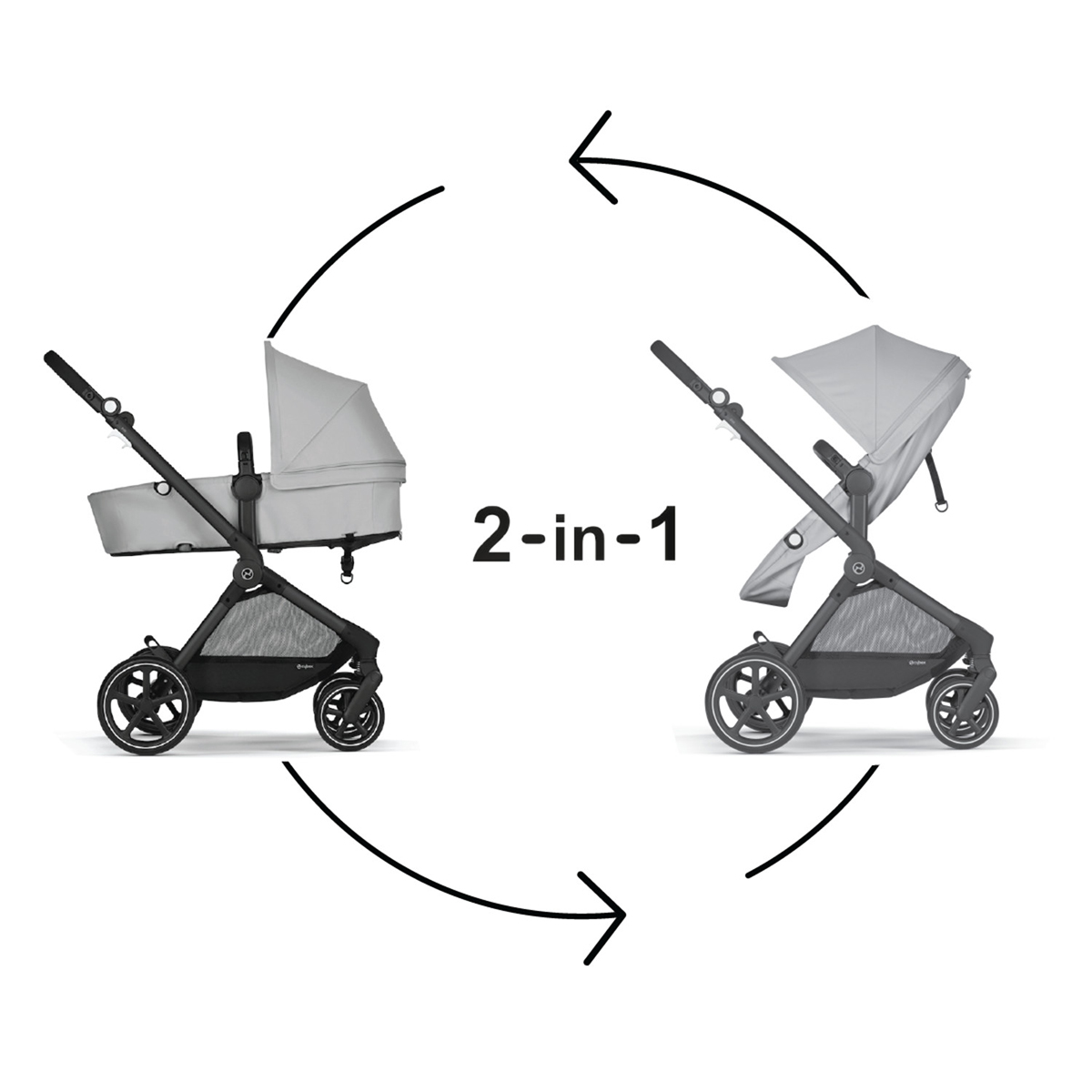 The CYBEX EOS Stroller + Aton G Infant Car Seat is a perfectly streamlined Travel System for your growing family. A complete travel solution from birth, it features a 2-in-1 seat unit that easily converts from lay flat "carriage mode" for your newborn to a reversible toddler seat when your child grows bigger no extra components or accessories required. Additionally, you can use the included adapters to attach the Aton G Infant Car Seat to create the ideal travel system. 2-in-1 for Everyday Discover the ultimate travel companion for your growing family with the CYBEX EOS Stroller + Aton G Infant Car Seat. This all-in-one solution ensures a seamless journey from birth, featuring a 2-in-1 seat that effortlessly transforms from a cozy newborn carriage to a reversible toddler seat, no extras needed. With advanced safety features, rugged all-terrain wheels, a front wheel suspension, and a spacious shopping basket, your family adventures just got easier and more enjoyable. Experience the effortless transition from driving to strolling today! 2-in-1: Seat Unit All you need for their first four years. Start off with carriage mode so your newborn can lie in comfort. When your child grows bigger, simply switch to seat mode so they can sit upright. No extra components are needed it's a complete solution from birth. Travel System Ready One frame but a variety of flexible options. As well as the carriage and seat unit-modes, you can easily attach a CYBEX infant car seat to the stroller frame, making the transition from drive to stroll child's play. Lightweight Convenience This Aton G infant car seat weighs only 9 lbs. It's incredibly lightweight for easy and hassle-free travel, making it a perfect addition to your travel system. Features Front Wheel Suspension; Spacious Shopping Basket; 5 Modes of Use; 11-Position Adjustable Headrest; In-Shell Air Ventilation; Oversized Sun Protection; What's In The Box EOS frame including wheels; EOS 2-in-1 Seat Unit; Aton G Infant Car Seat; Aton G Base; Car Seat Adapters; Bumper Bar; Cup Holder; Specifications EOS Stroller: Age Range: From birth to approx. 4 years; Weight: Max. child weight 50 lbs.; Specifications Aton G Infant Car Seat: Age Range: From newborn up to approx. 18 months; Child Height: max. 32"; Child Weight: From 4 lbs. up to 35 lbs.; Care instructions: Wash separately. Gentle action wash warm water, do not bleach, do not tumble dry, do not iron, do not dry clean.; Compatible with EOS Stroller: All CYBEX Infant Car Seats; Rain Cover; Summer Seat Liner; 2-in-1 Cup Holder; Compatible with Aton G Infant Car Seat: Aton G Swivel Base; Infant Car Seat Rain Cover; Infant Car Seat Insect Net; Infant Car Seat Sun Shade;.