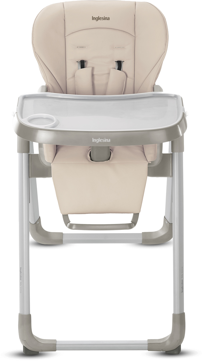 My time is Inglesina's premium highchair for your child's very first meals. Both the ergonomic backrest and the footrest can be reclined in 3 positions, ensuring the highest comfort of your baby. It is 4-position height adjustable. My time is practical for parents too. Mealtimes can be messy. Its leatherette seat can be easily cleaned with a sponge, and its serving tray is washable in the dishwasher. Once folded, My time is extra compact and can even stand by itself to make your dining area more organized. For Your Child's First Meals My time is the ideal highchair for your baby's very first meals. The sleek and cozy seat design is reminiscent of the seats within an Italian sports car, letting your baby enjoy their first meals in comfort and style. Both the backrest and the footrest can be reclined in 3 positions, which help manage the breaks between each mouthful, allowing your baby to rest. With the latest in ergonomic design, My time will provide a pleasurable dining experience to your family over a long duration of time. Wide And Comfortable Seat With A 5-point Safety Harness The seat features generous padding that offers extraordinary comfort for your baby both during feeding and resting. Its high backrest ensures that your baby's head is well supported. A 5-point safety harness assures that your baby is safe and secured. My time is made with premium quality materials that are durable and follow the tradition of high quality that Inglesina has come to be known for. Included Serving Tray The My time highchair includes a serving tray (with drink holder), removable and dishwasher safe, to divide the meal time from game time. Height adjustable in 4 positions; 3-position reclinable seat and 3-position adjustable footrest; Removable and washable pad; Extremely compact when closed. It stands by itself even when folded; Equipped with rear wheels; The included serving tray can be put in the dishwasher; Equipped with a soft, reclining seat providing comfort both during meal times and for napping afterwards.; Extremely compact once folded. It disappears behind a door. The serving tray can be detached from the main tray and is dishwasher safe.; Specifications Approx. Open Dimensions: 21.6" x 31.5"-40.5" x 30.3"; Folded Dimensions: 21.6" x 33.9" x 8"; Weight with tray: 24.25lbs; Weight without tray: 21.6lbs;.