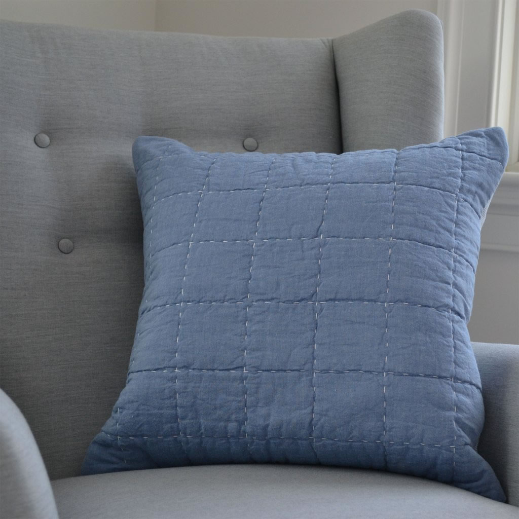Hello Spud's Box Quilt Blue Decorative Cotton Pillow with removable Poly-Stuffer is perfect for your little one's nursery glider. Also works great with toddler beds and looks stylish in any room. Pillow size is 20" x 20".