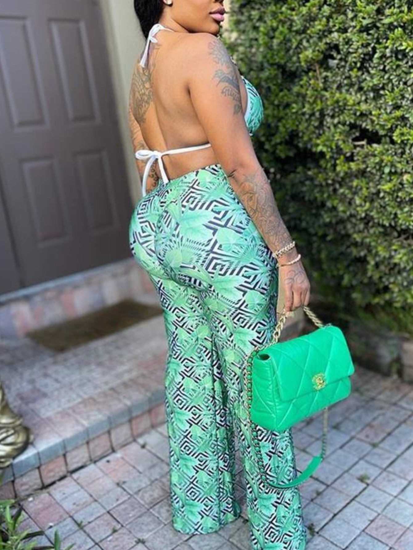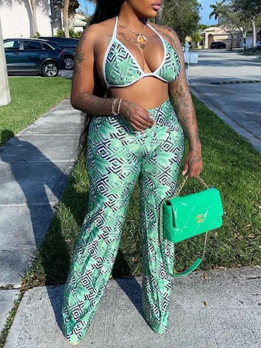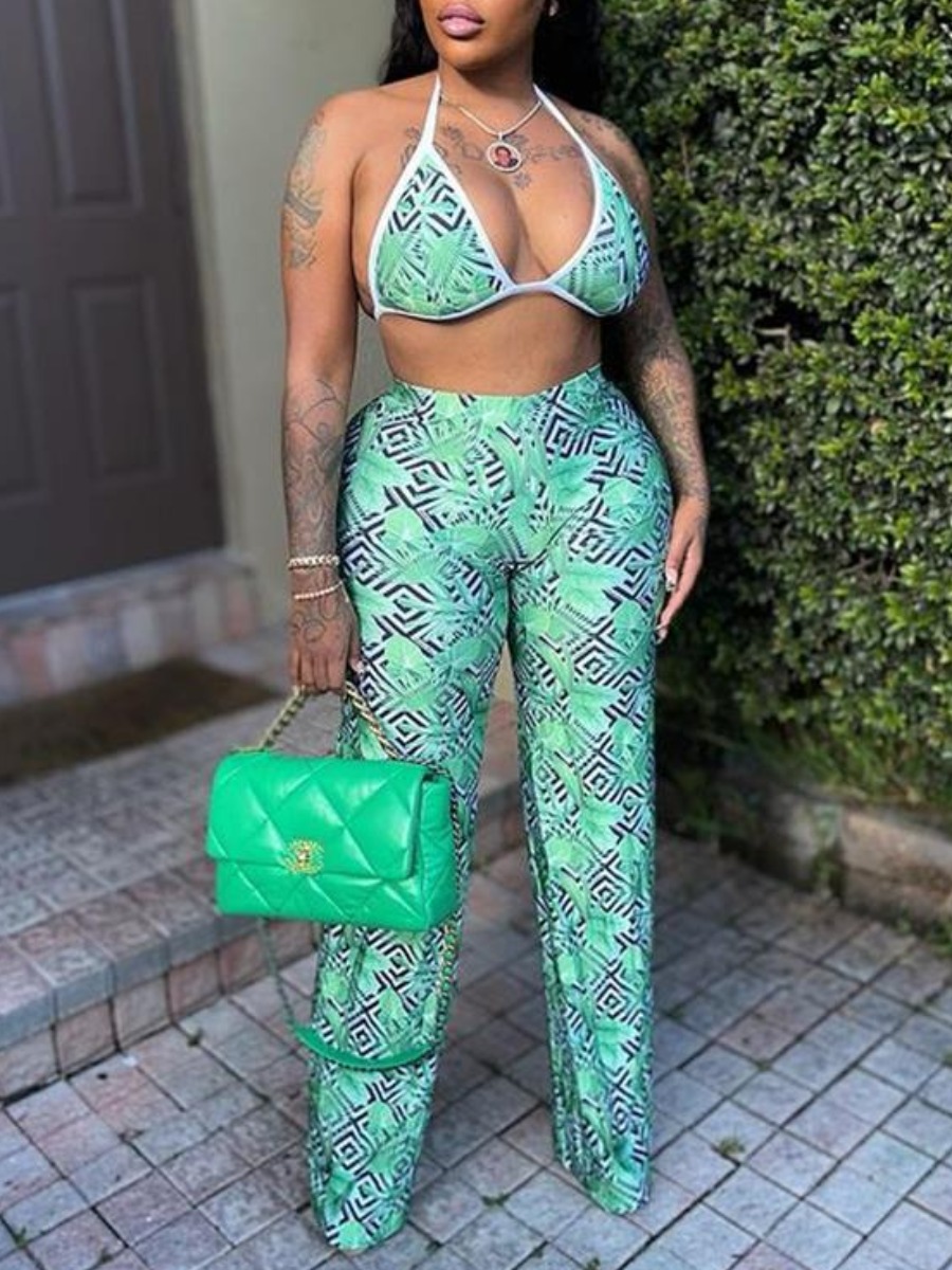LW Plus Size Bra Floral Geometric Print Pants Set.