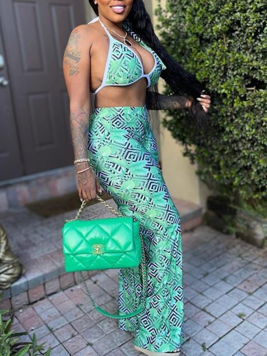 Buy LW Plus Size Bra Floral Geometric Print Pants Set for $6.99 at @ Lovelywholesale.com