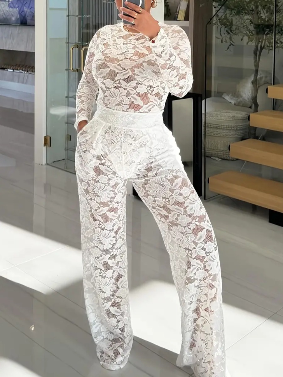 Buy LW Lace Solid Color Two-piece Pants Set for $29.69 at @ Lovelywholesale.com
