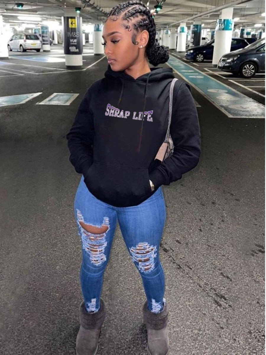 Buy LW Figure Letter Print Kangaroo Pocket Hoodie for $8.99 at @ Lovelywholesale.com