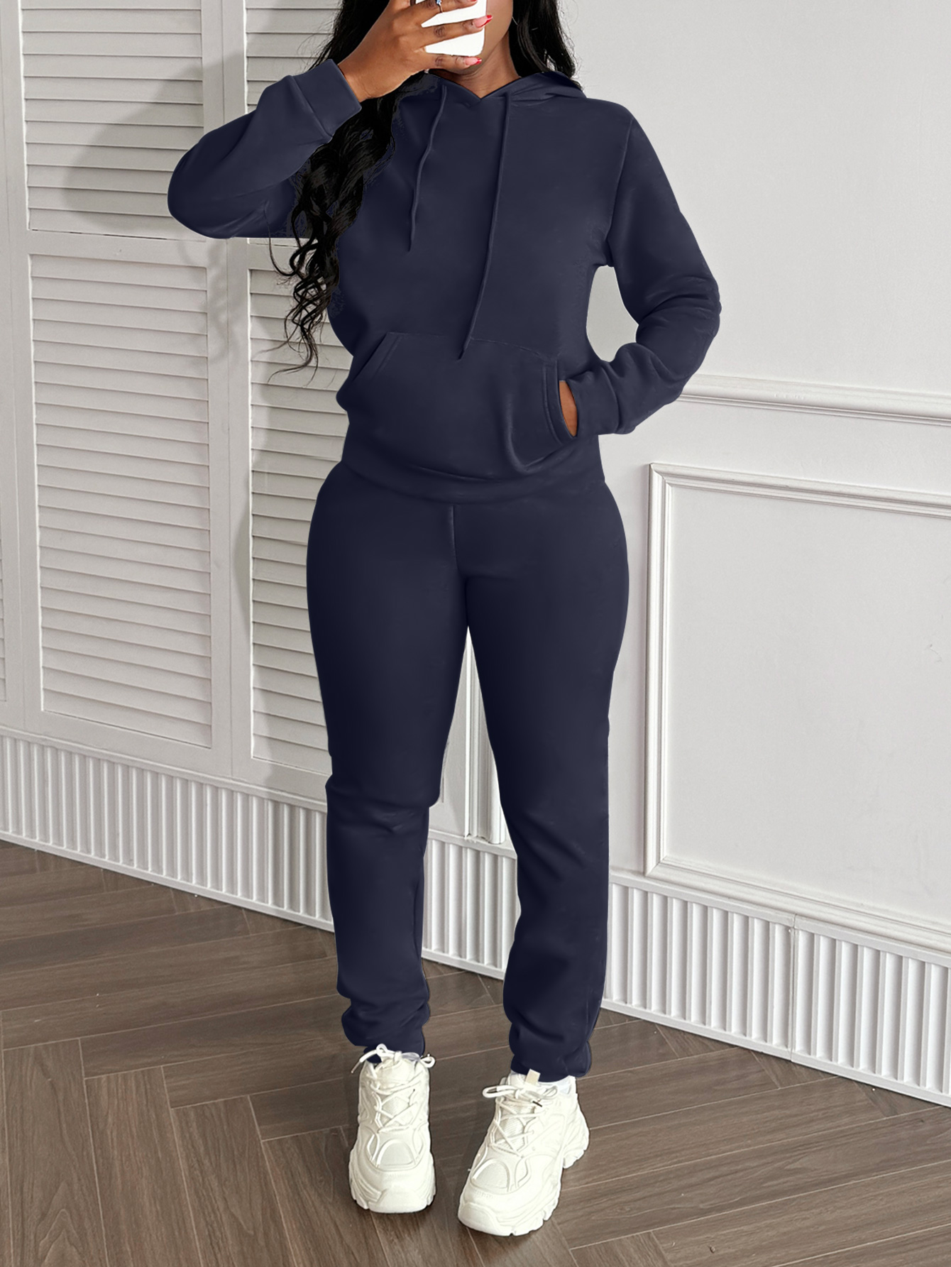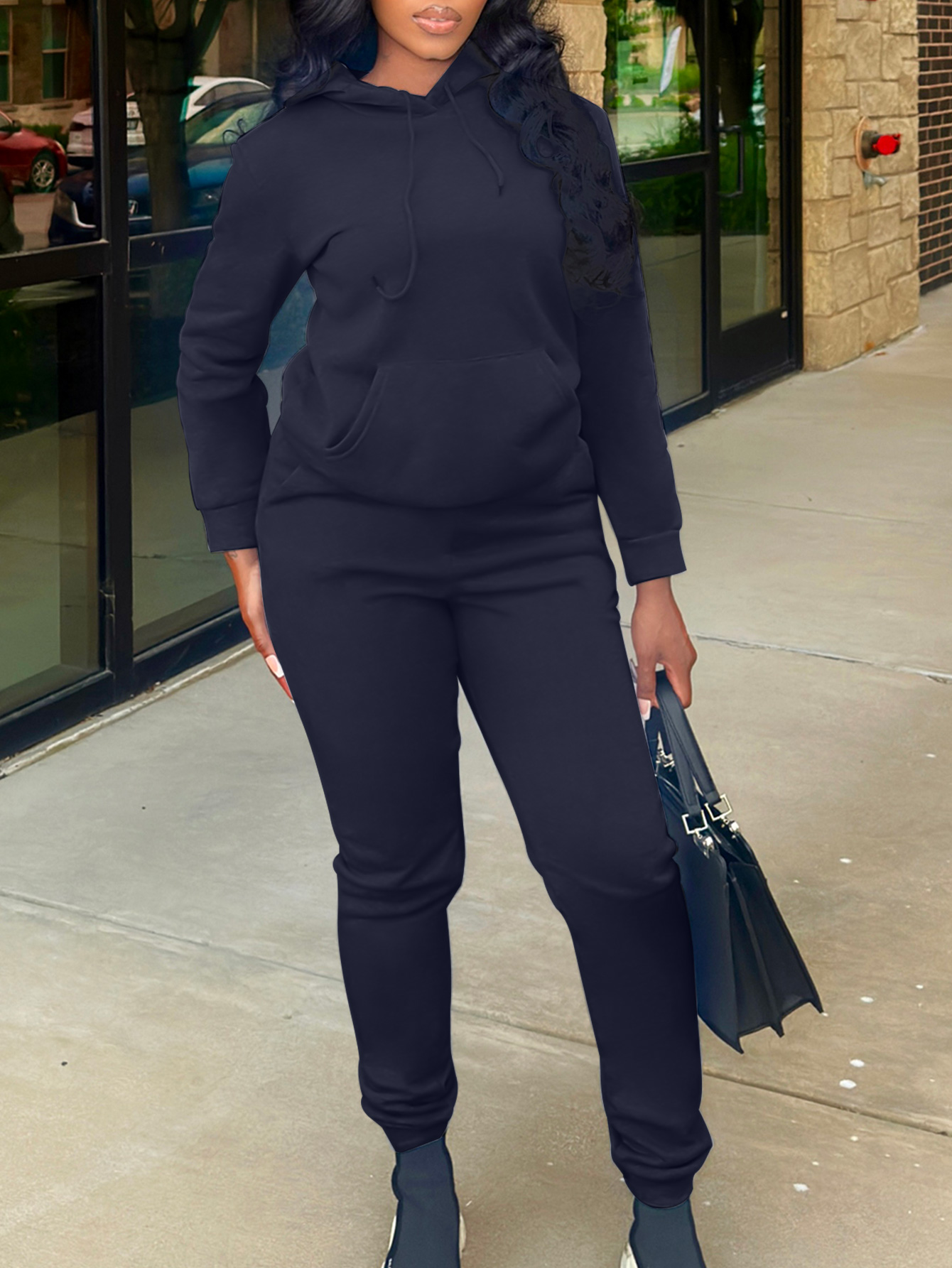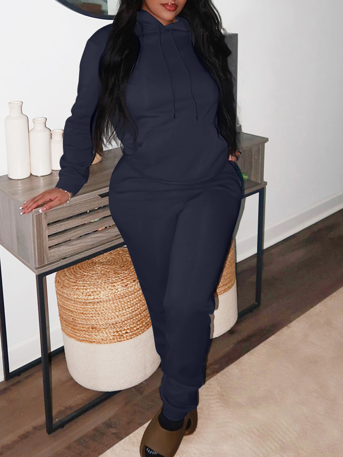 Buy LW Casual Sweat Hooded Collar Lace Up Solid Color Long Sleeve Two-piece Pants Set for $28.99 at @  Lovelywholesale.com