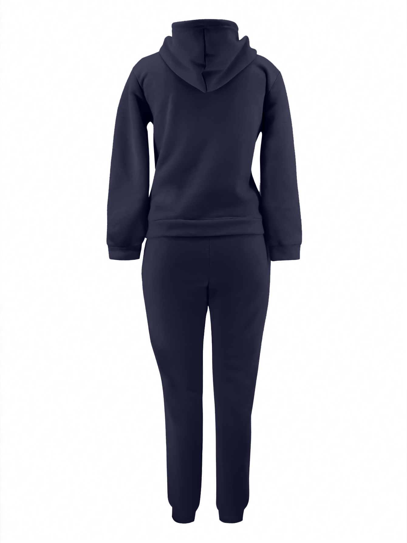 LW Casual Sweat Hooded Collar Lace Up Solid Color Long Sleeve Two-piece Pants Set.