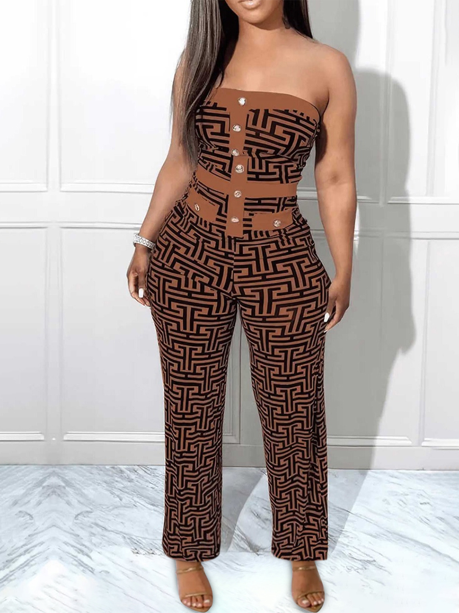 Buy LW Off The Shoulder Geometric Print Jumpsuit for $37.99 at @ Lovelywholesale.com