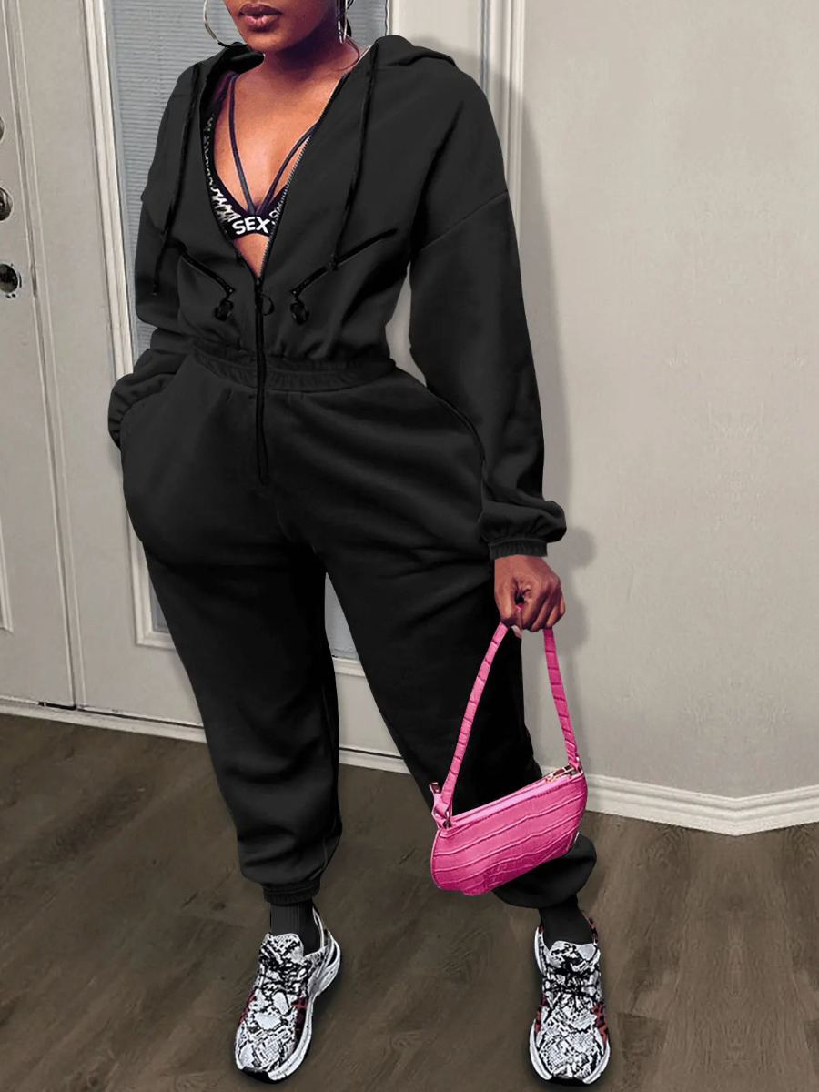 Buy LW Hooded Collar Zipper Design Jumpsuit for $17.39 at @ Lovelywholesale.com