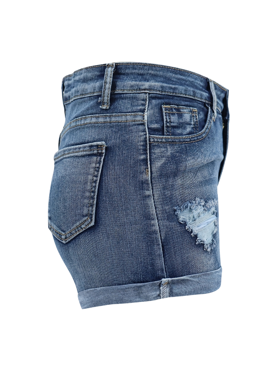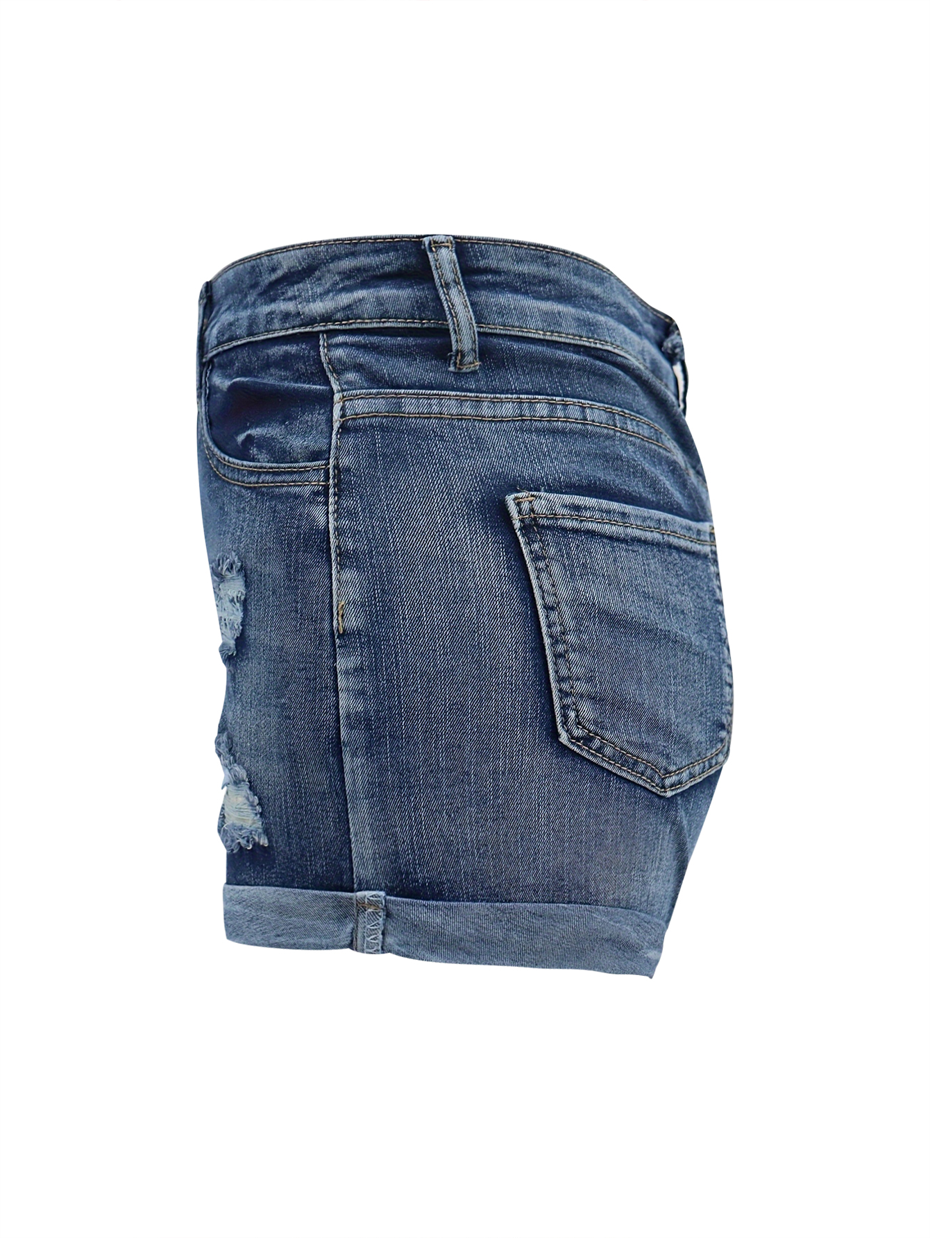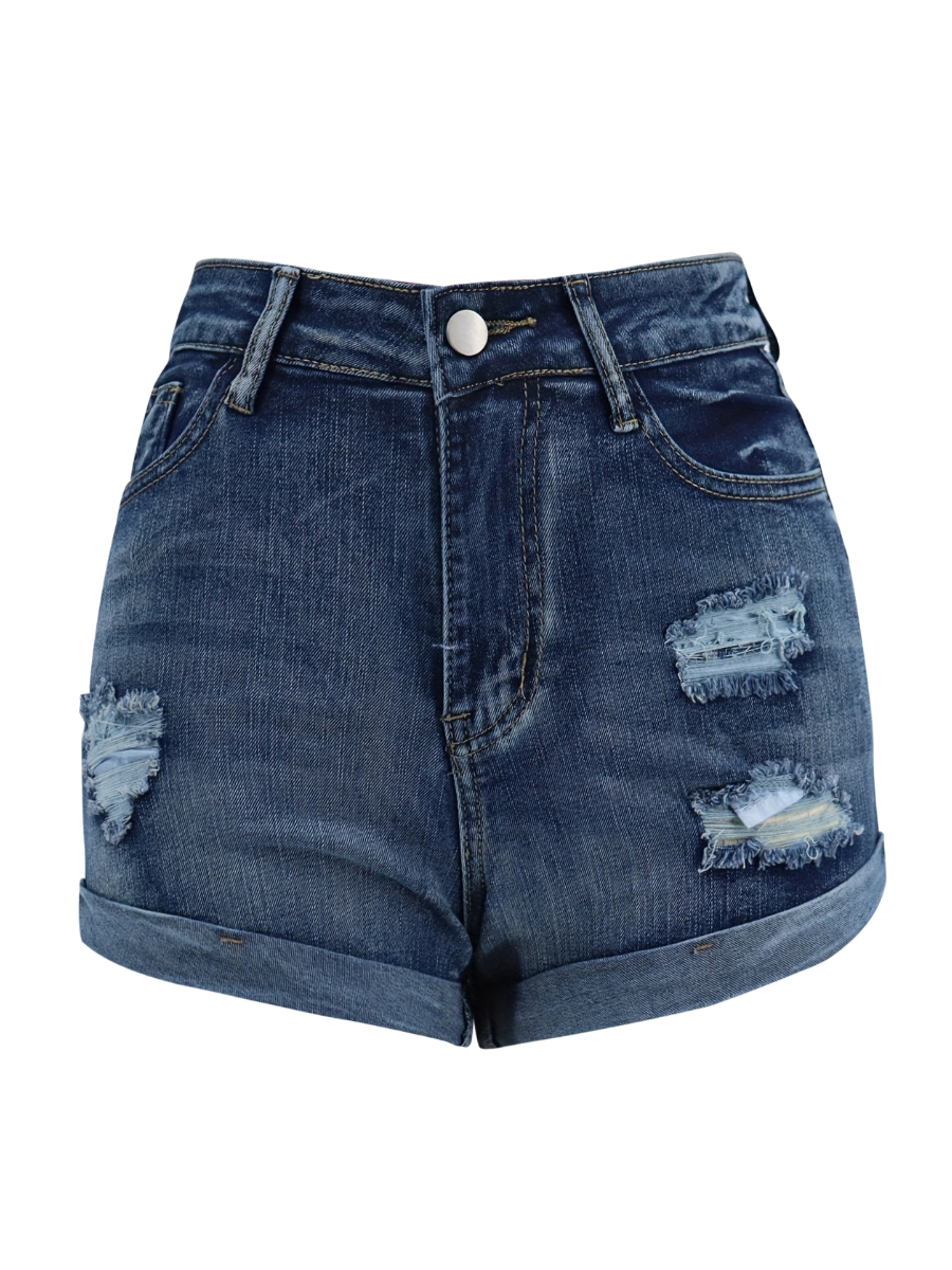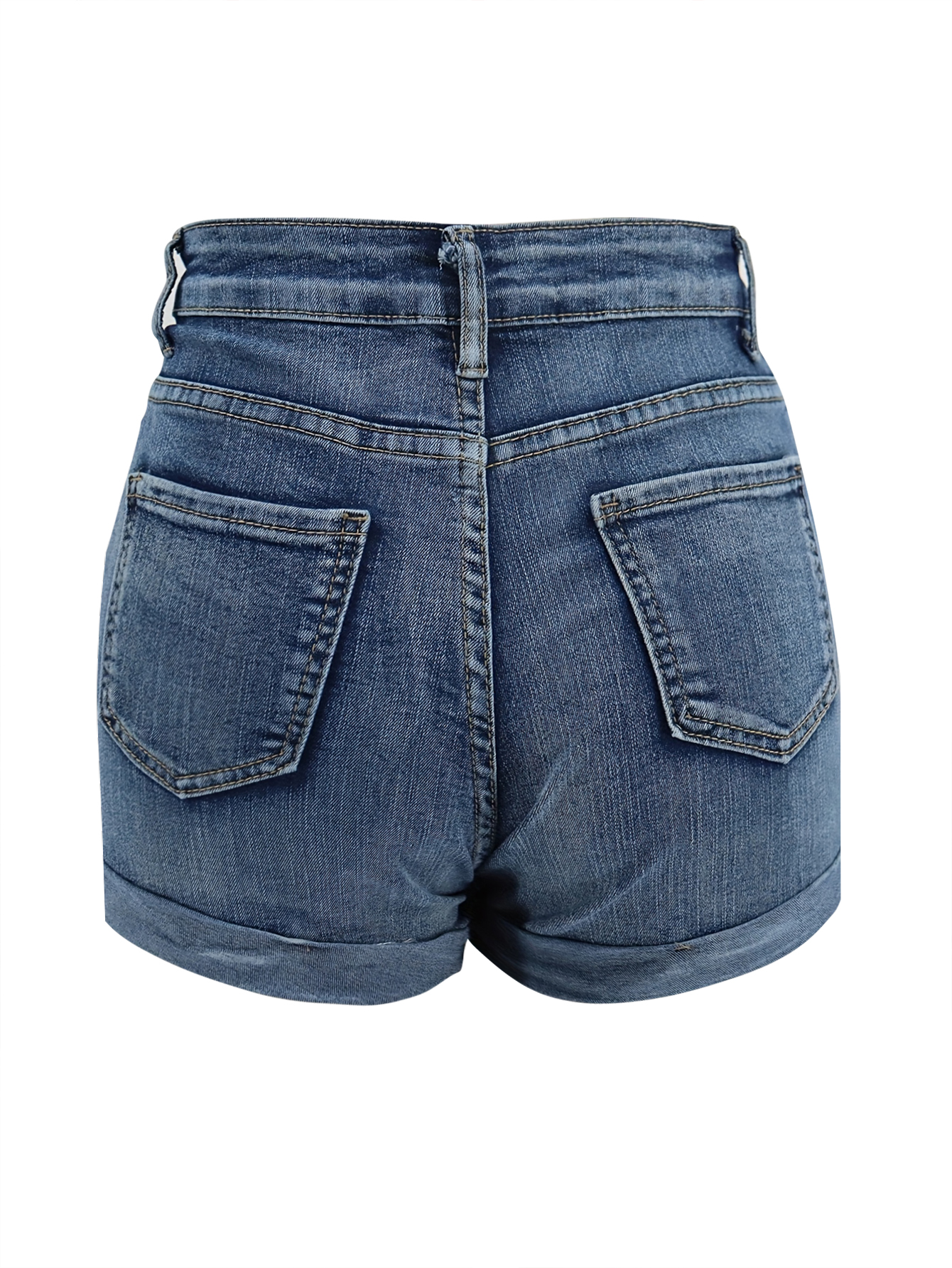 LW High Waist Ripped Pocket Design Solid Skinny Stretchy Denim Shorts.