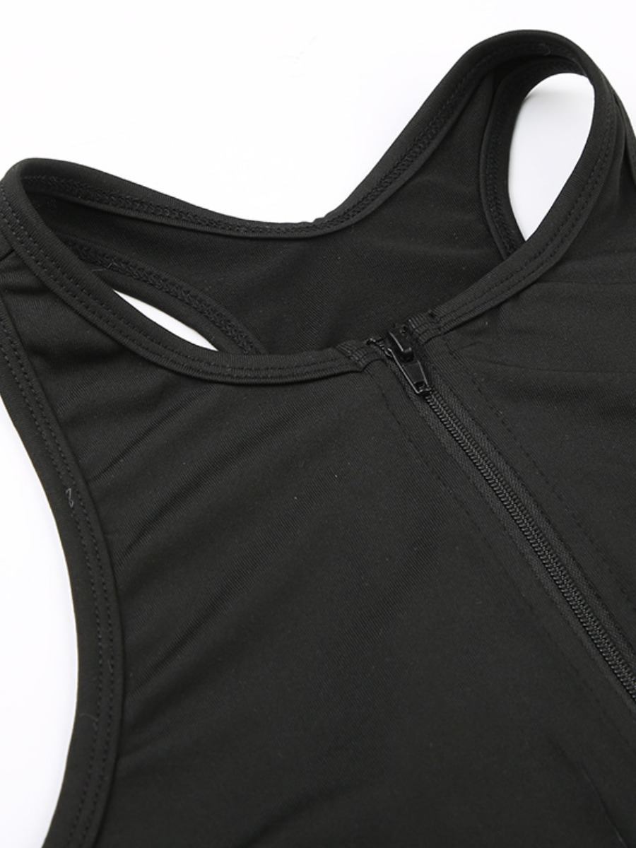 LW BASICS Zipper Design Solid Color Jumpsuit