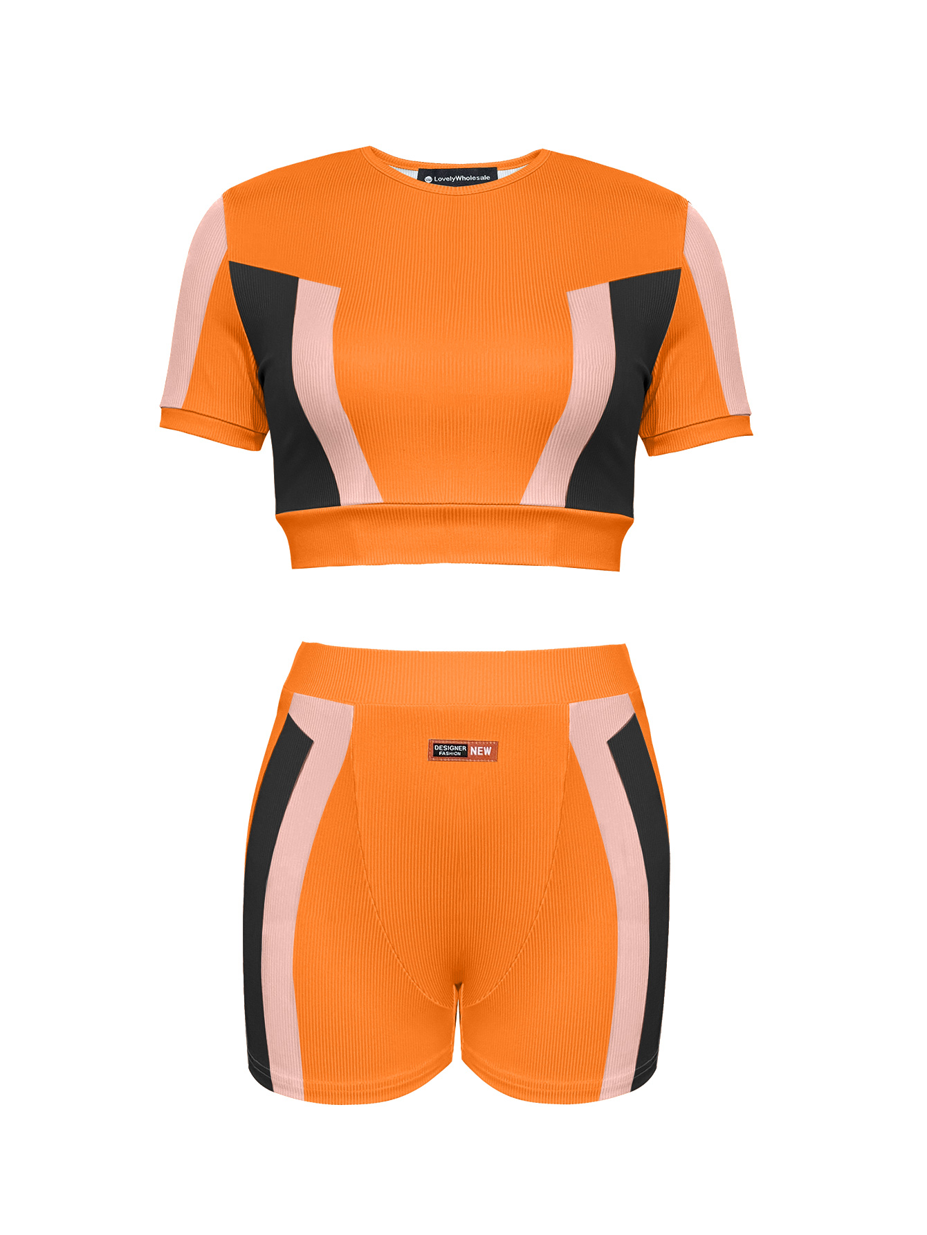 Buy LW Crop Top Color Lump Patchwork Shorts Set for $11.99 at @ Lovelywholesale.com
